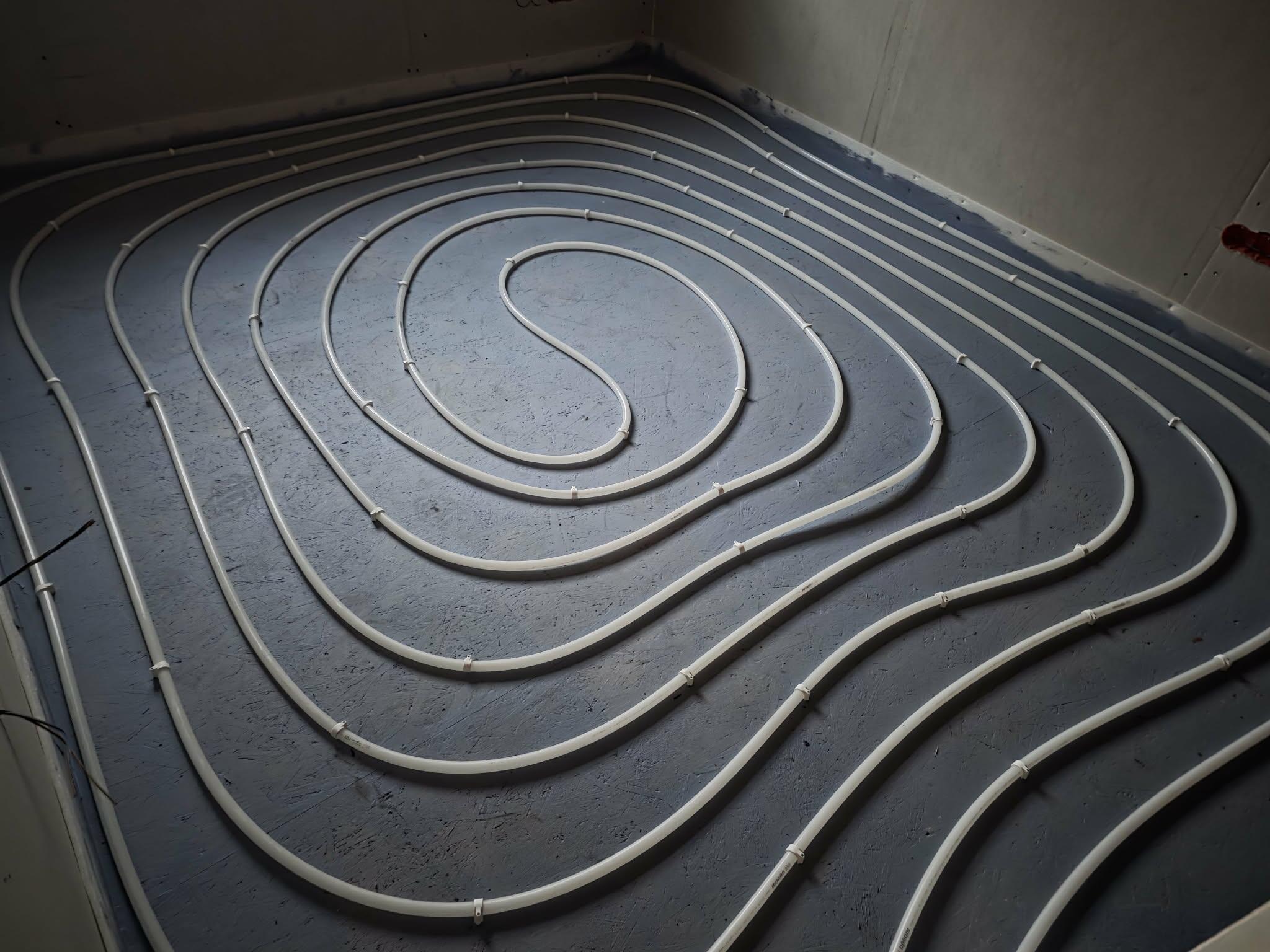Põrandakütte toru (20 mm) on juba paigaldatud. Aluspind ette valmistatud.
