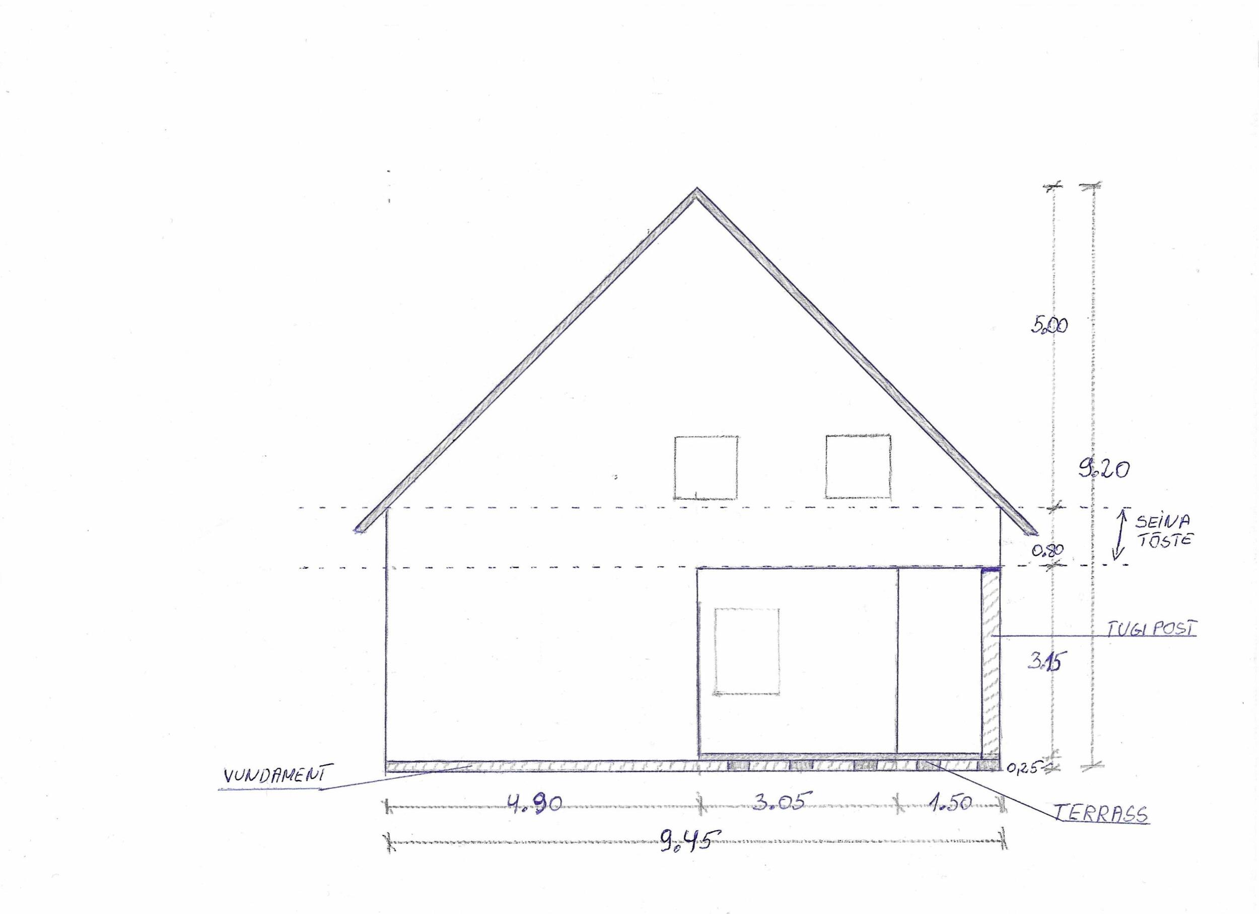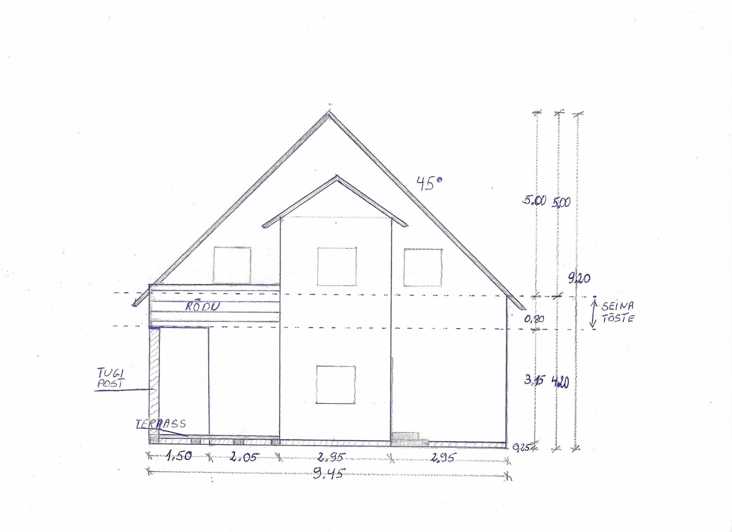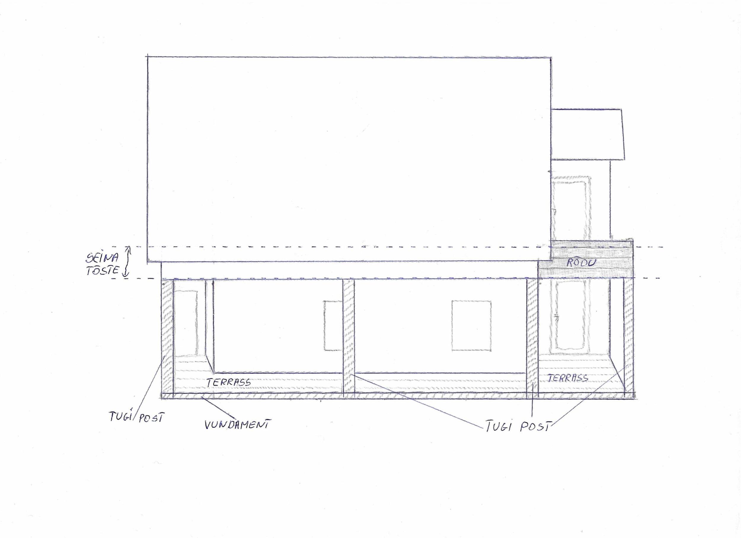 Katuse osas nähakse ette, et ühelt küljelt jääb katuse väljaehituse ülekatte ulatus 1,5 meetrini.