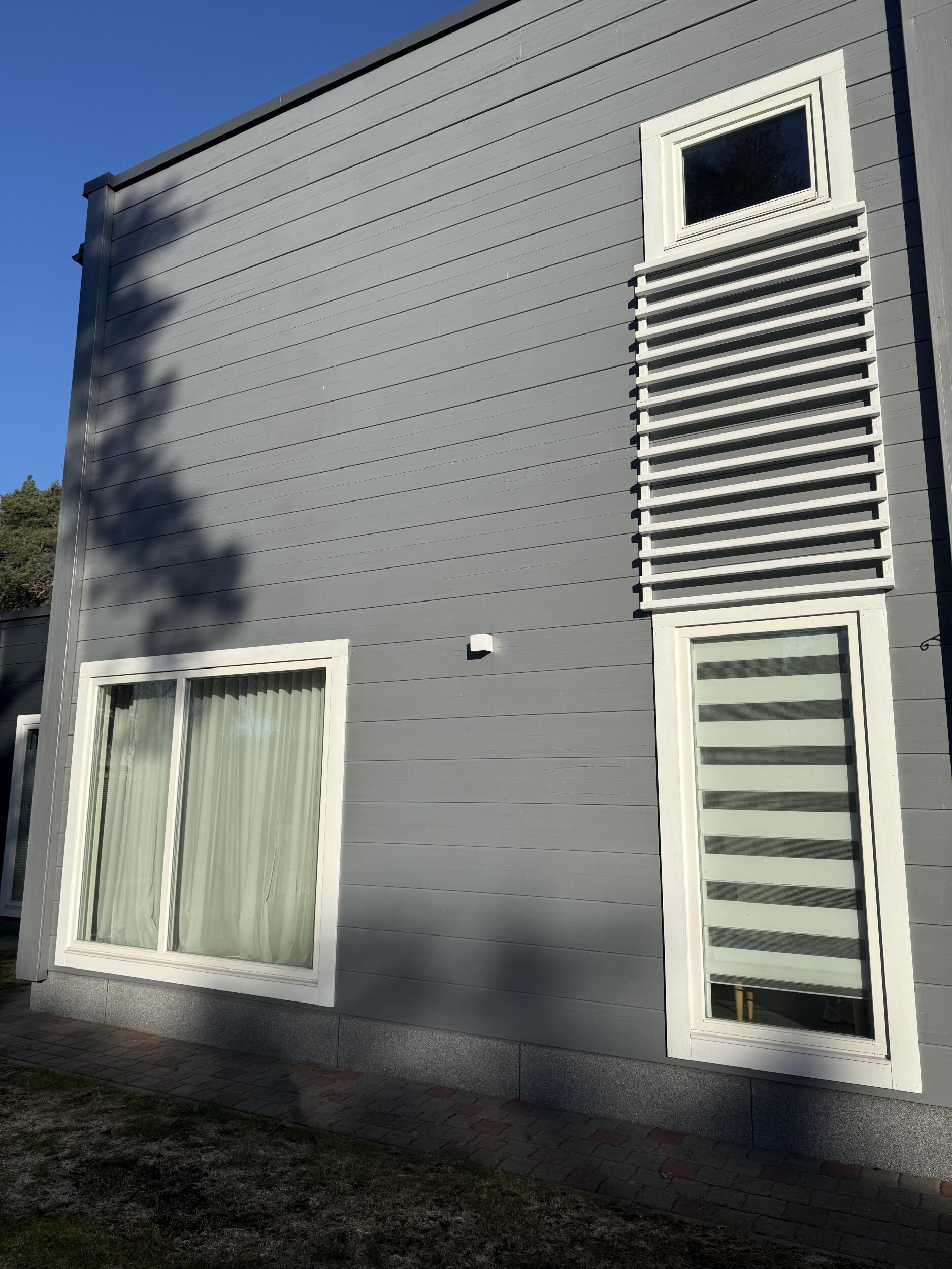 Akende pesu seest ja väljast, kahekordsel eramajal, kokku 13 maast laeni akent (kaks suuremat, teised laiusega 80cm), 4 väiksemat akent ja 2 saunaakent.