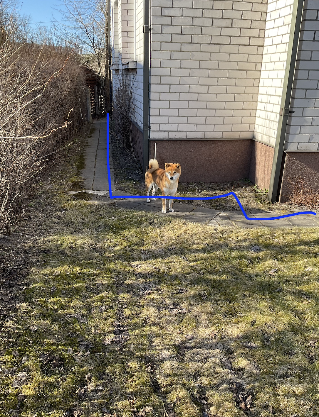 Tööala laius (majast aiani) on ca 1m , seega masinaga ilmselt vahele ei mahu ja töö on käsitsi.