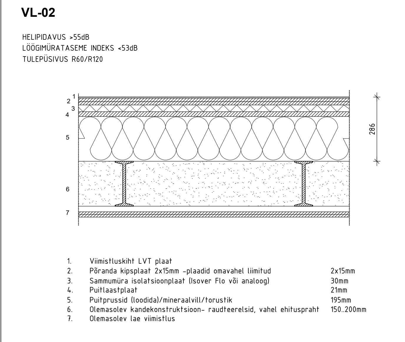 5-toalise korteri põrandaehitus vastavalt pildil olevale kirjeldusele.
