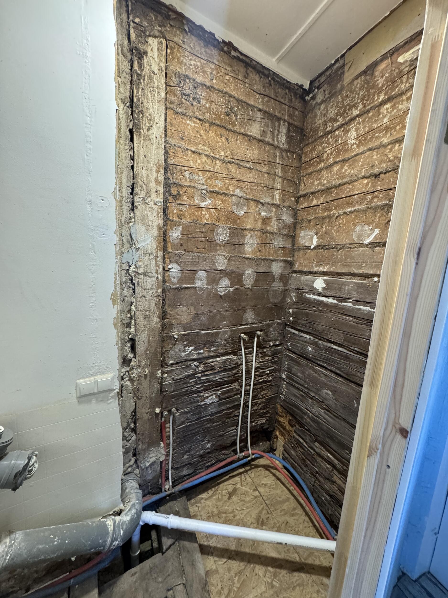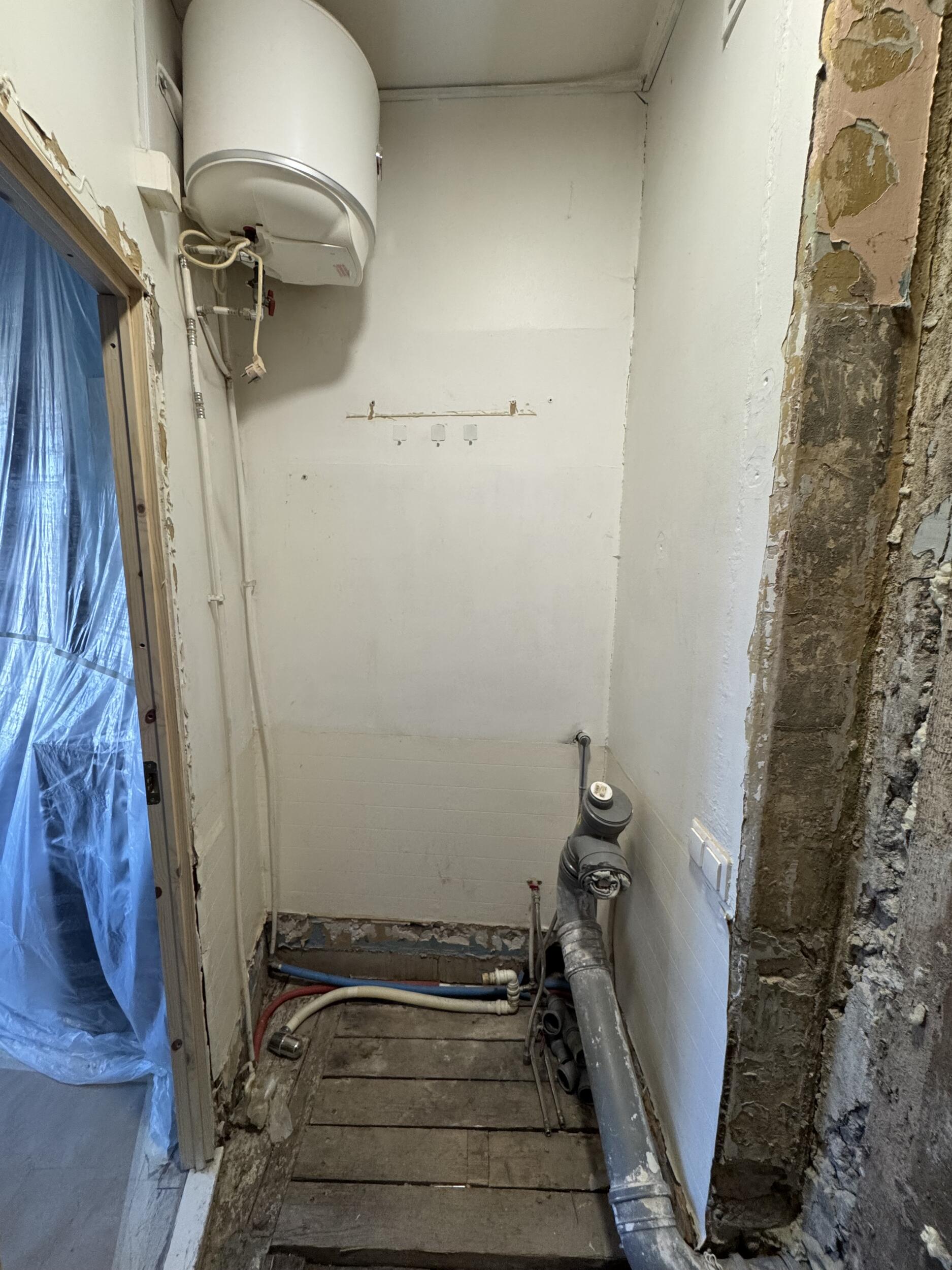 There is a need to do insulation of bathroom, then simple renovation of shower area, floor and toilet /sink installation.