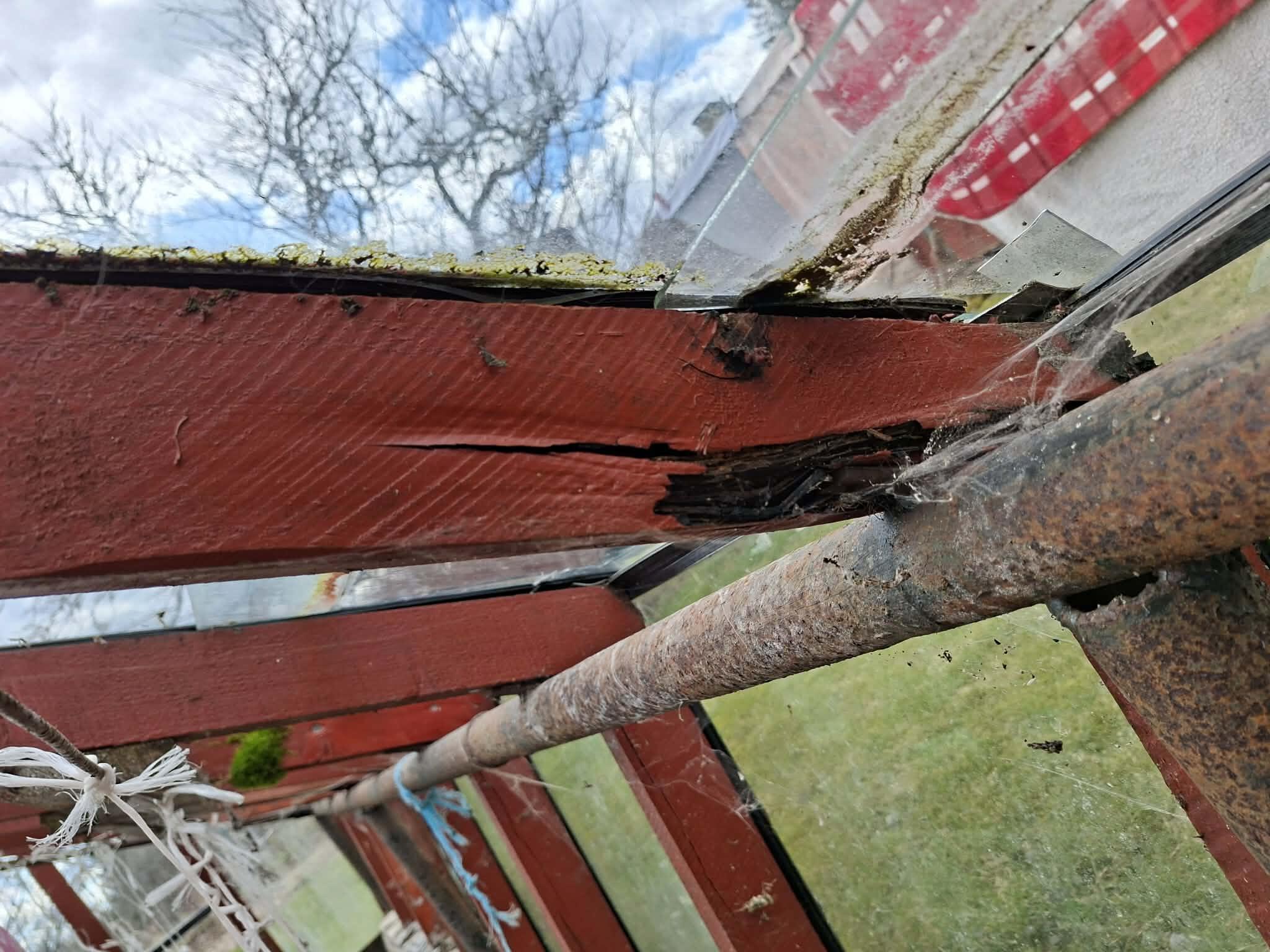 Vaja on vahetada mõned sarikad, mis on otstest mädanenud ja mõned katkised klaasid. Materjal on tellija poolt.