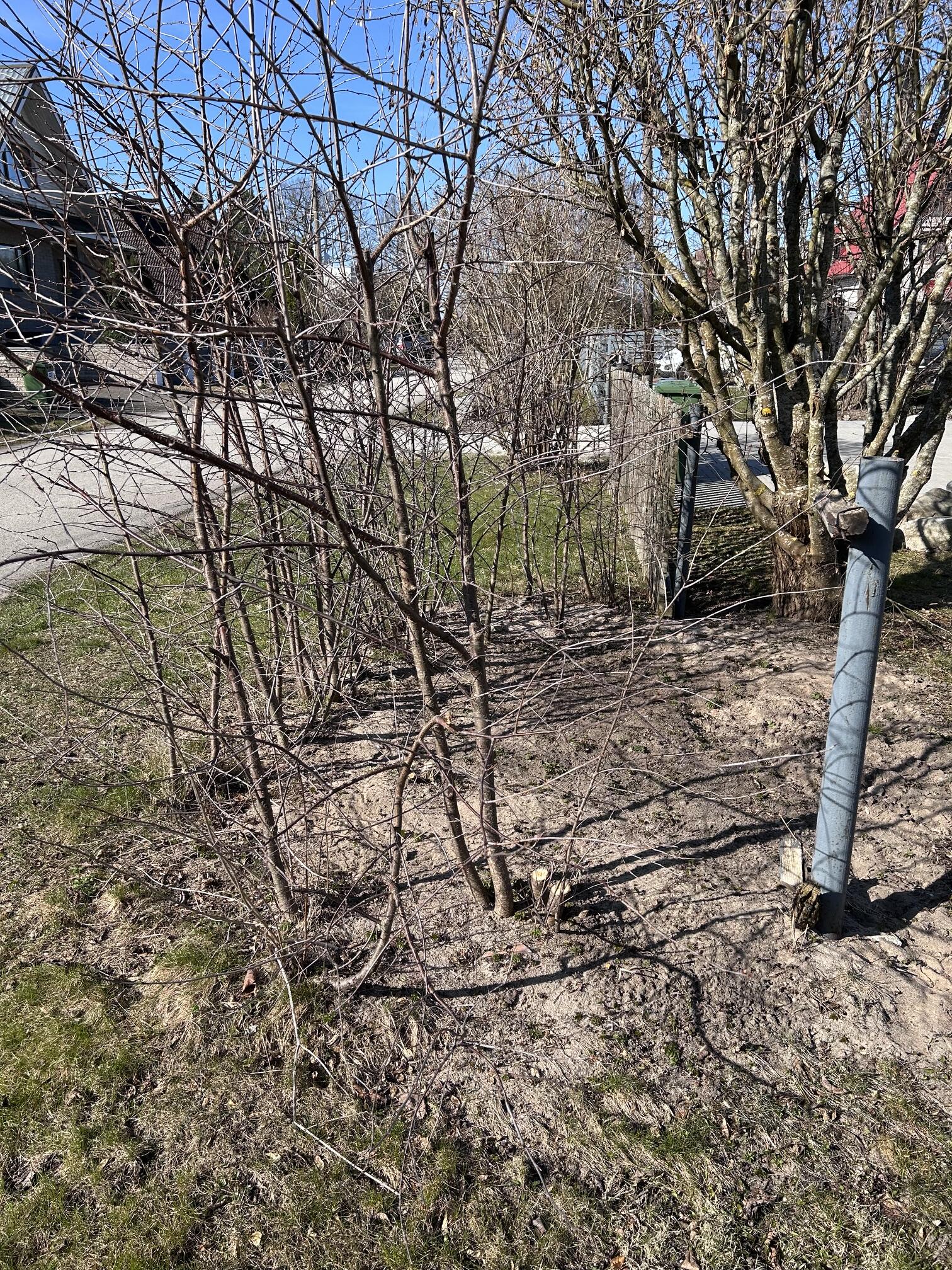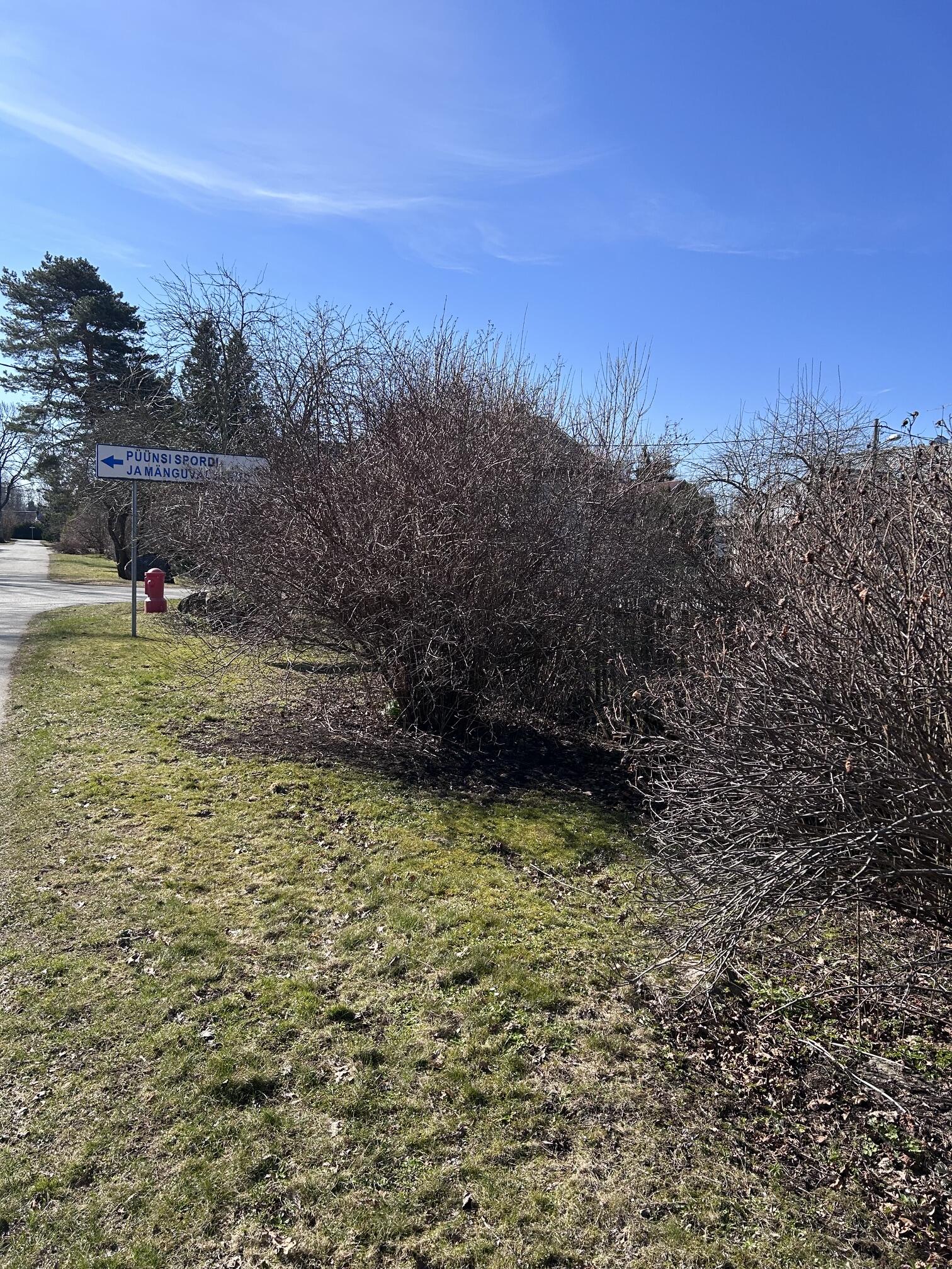Tarvis eemaldada ja utiliseerida järgnevad elemendid. Üks kirss, kuldvihm, sarapuu. Lisaks erinevad võsud, kännud ja põõsad kokku 7tk. Pildil olev kivihunnik. 10 metallist aiaposti ja lagunenud puitaed. Oluline on, et pärast jääb puhas ja kena plats alles.