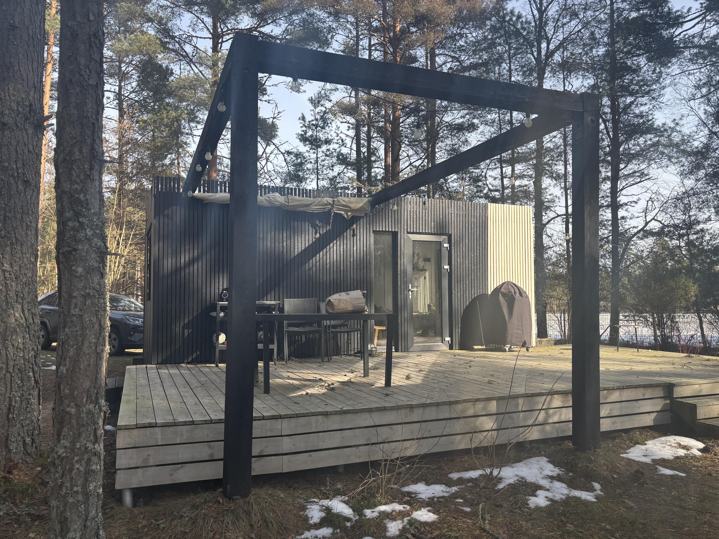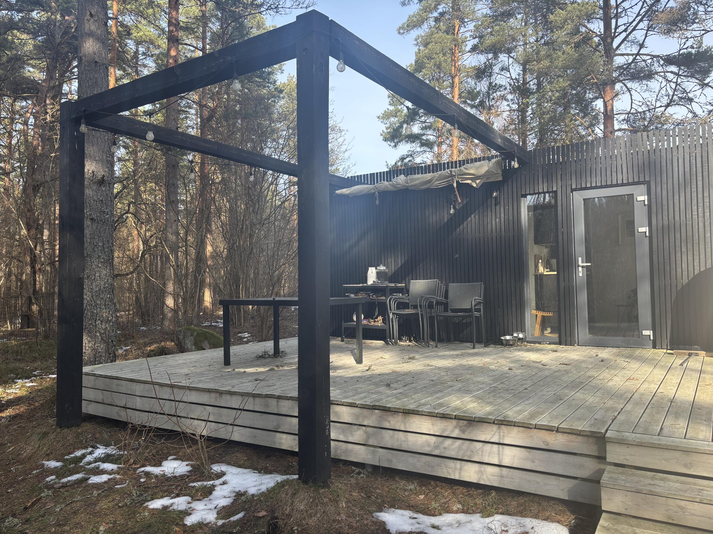 Katus tuleks kinnitada pildil nähtavale puidust karkassile. Klaas peab olema piisavalt tugev ( männimetsa sees) ja pakkuma varju päikese eest. Soov tume klaas.