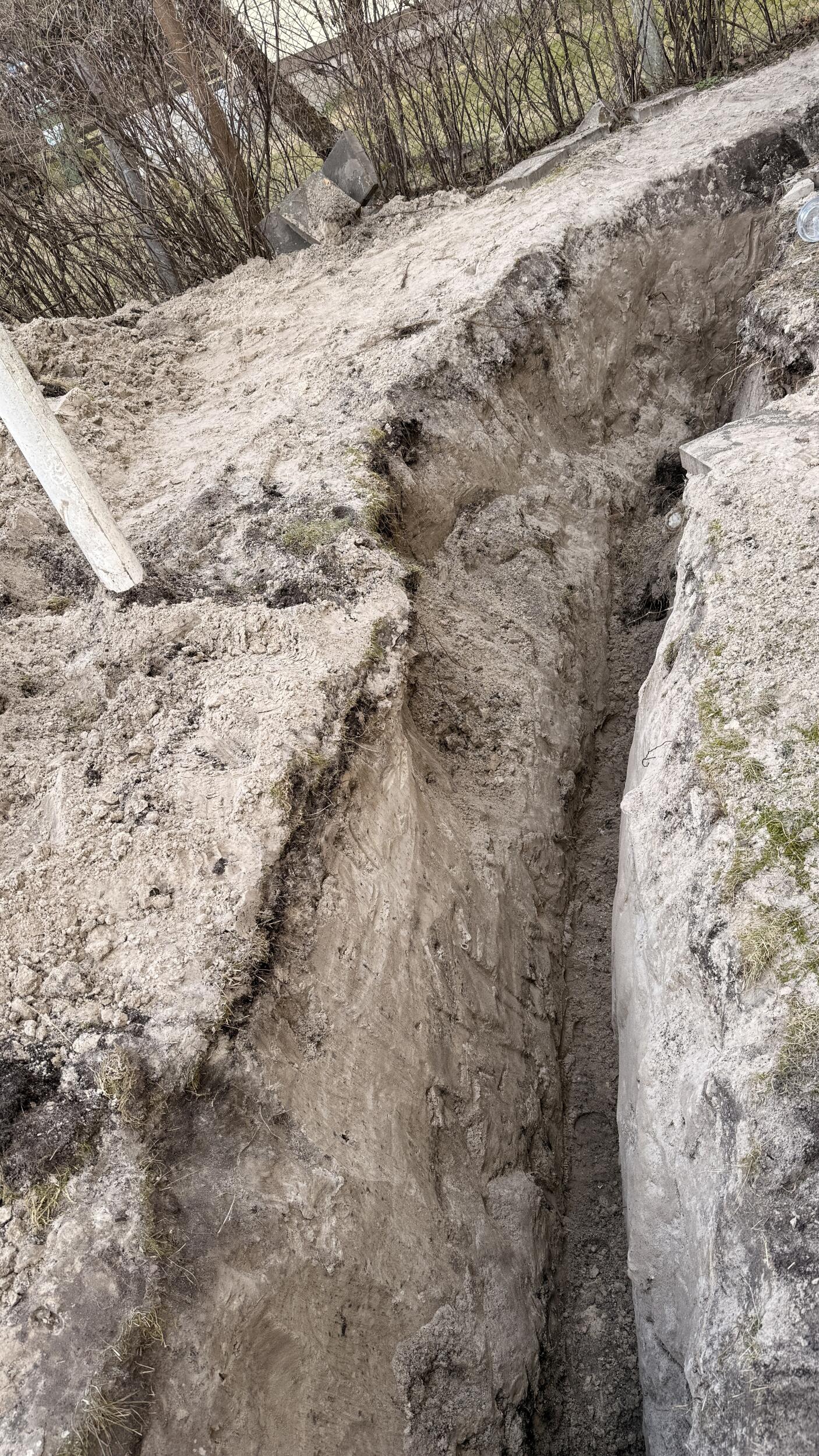 Kraav on ca 1,5m sügavuselt lahti kaevatud, taldmik ca 1,7m peal, aga vesi tuleb vastu.