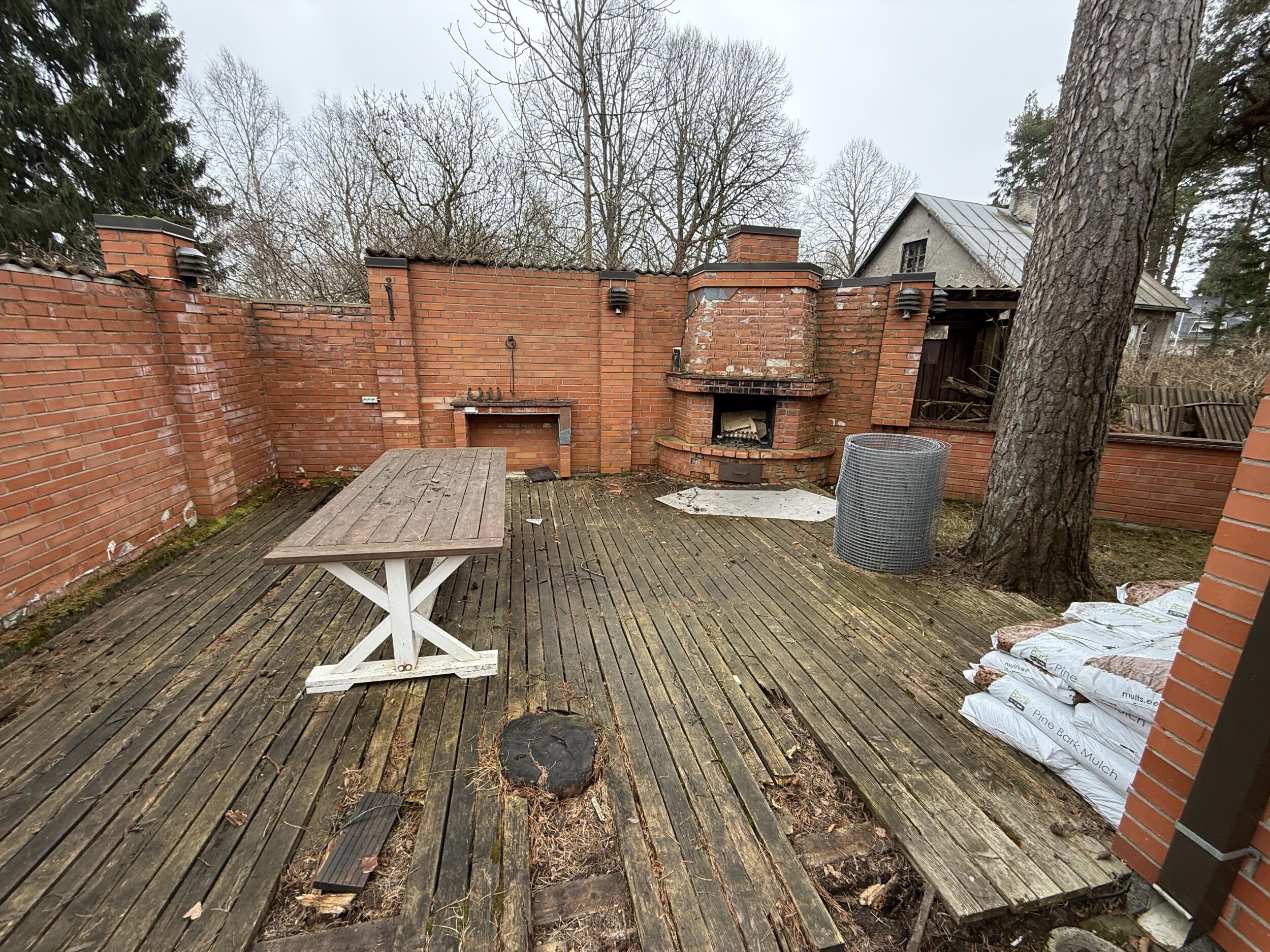 90. rajatud välikamine, suitsuahju ja müüride renoveerimine ja konserveerimine. Palun pakkumist lagunenud müüriosade remondile, vajadusel kivide vahetusele ja lahtiste kivide fikseerimisele (simsi kivid kohati lahti). sademeveele avatud pindade parem kaitsmine nt katteplaatidega. Puuduolevad katusekivid müürile on juba tellitud ja saavad lähiajal paigaldatud. Kamina peal on üsna heas seisundis SBS vms katus.