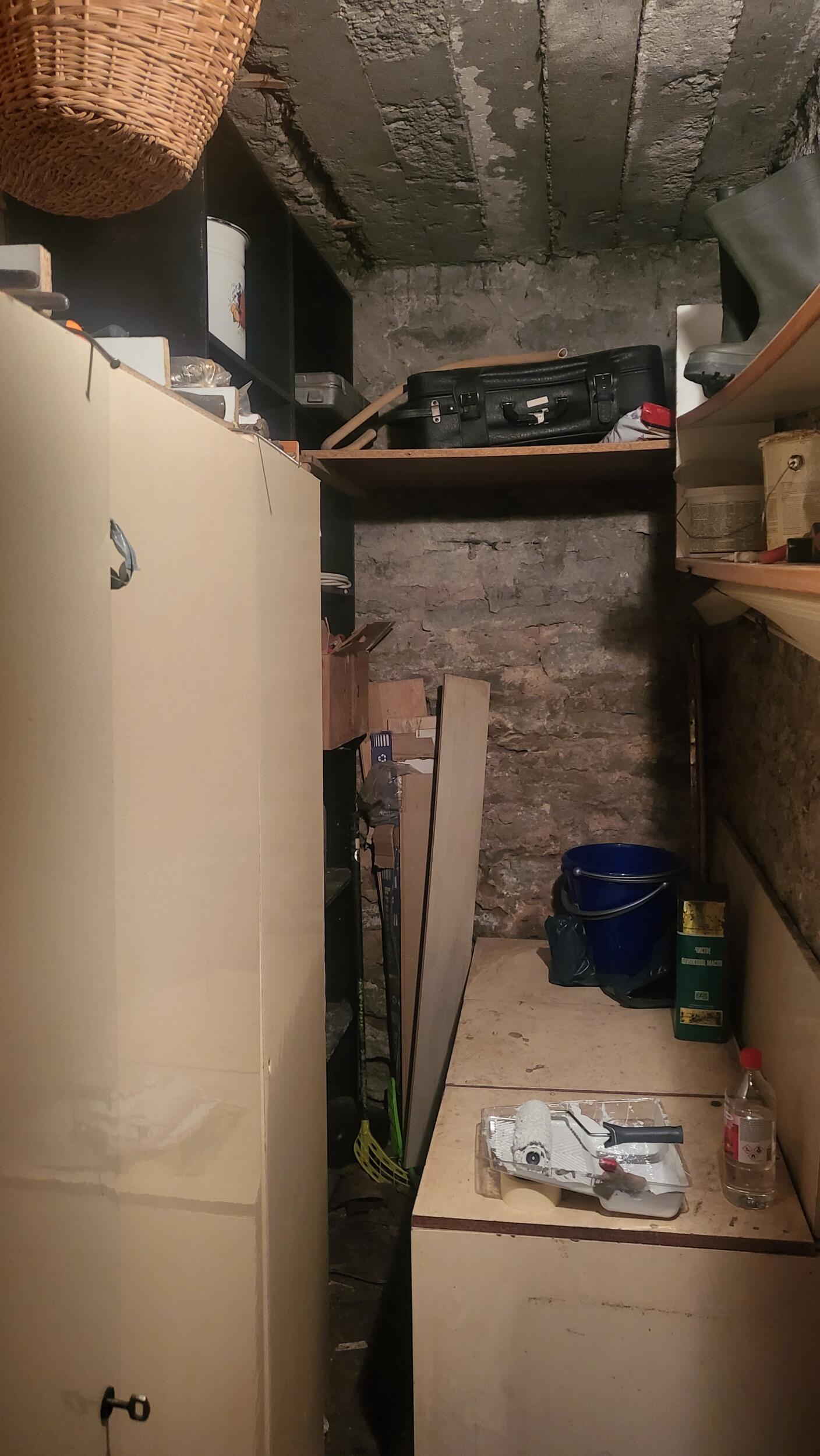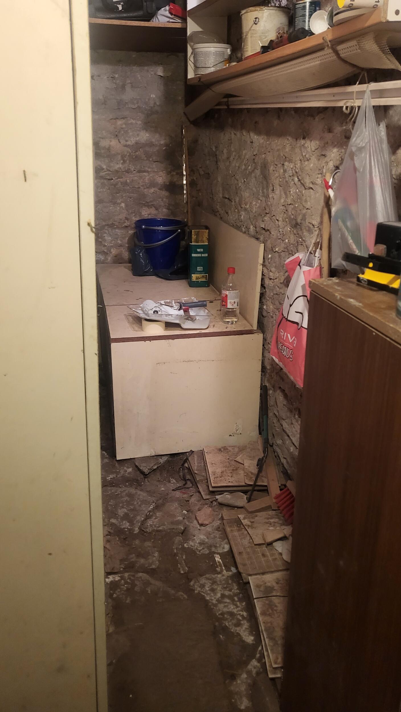 Keldripoksi tühjendamune, äravedu ja utiliseerimine kaasaarvatud kahe keldris oleva kapi lammutamine.