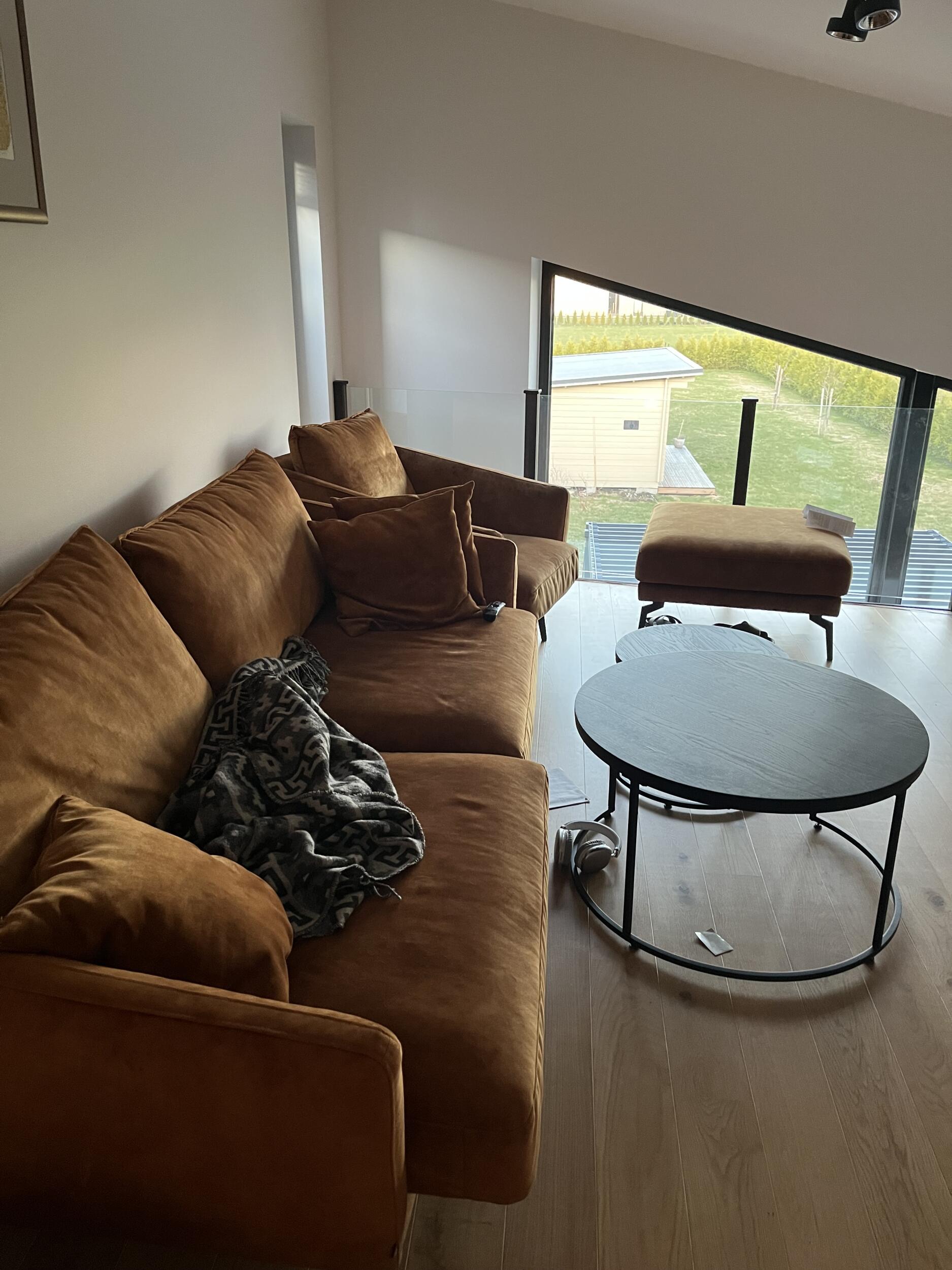 Vaja liigutada 1 diivanikomplekt alumisele korrusele ning teine diivan üles. Esmasel inspektsioonil ei tundu et eriti saaks neid tükkideks võtta, aga eemaldama peaks jalad ühel diivanil ja kui siiski võimalik, siis veel midagi lahti võtta kuna trepp on kitsas ja seina ei taha kahjustada.