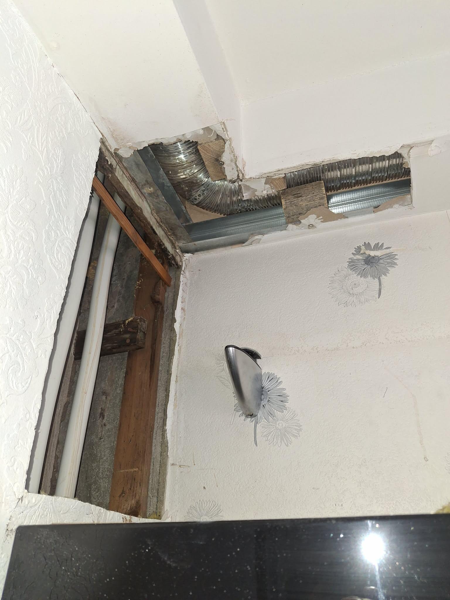 Lisaks on ventilatsioonitorusse ~10 aastaga kodunenud vett, rasva jmt, mis põhjustas toru ning seina/lae kahjustused. Ka see vajab vahetamist ning sein-lagi korda tegemist.