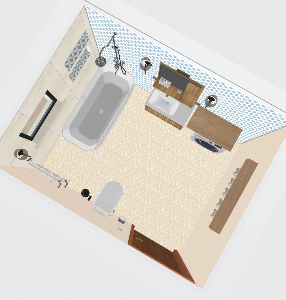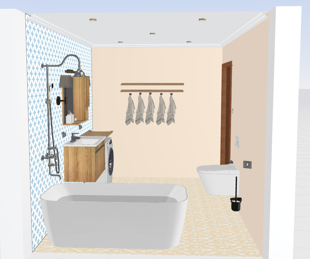 Olemasoleva kergvaheseina ja lae lammutamine, plaatide eemaldamine seintelt ja põrandalt, akna vahetus. Aluspindade kontrollimine ja ettevalmistus. Ruumi laiendamine naaberruumi arvelt, uue kergvaheseina (1,6 m x 2,24 m) ehitus ja uue ukseava tegemine koos ukse paigaldusega. Uue torustiku paigaldamine vastavalt planeeritud ruumilahendusele. Uue elektrisüsteemi (lülitid, pistikud, valgustid) välja ehitamine vastavalt niiske ruumi nõuetele, pindade hüdroisolatsioon. Uue kipslae ehitus koos viimistlusega, põranda (ca 8,12 m2) ja seinte (ca 6,61 m2) plaatimine. Ülejäänud seinapind läheb värvi alla. Sanitaartehnika ja muu inventari paigaldus. Ehitusprahi äravedu.