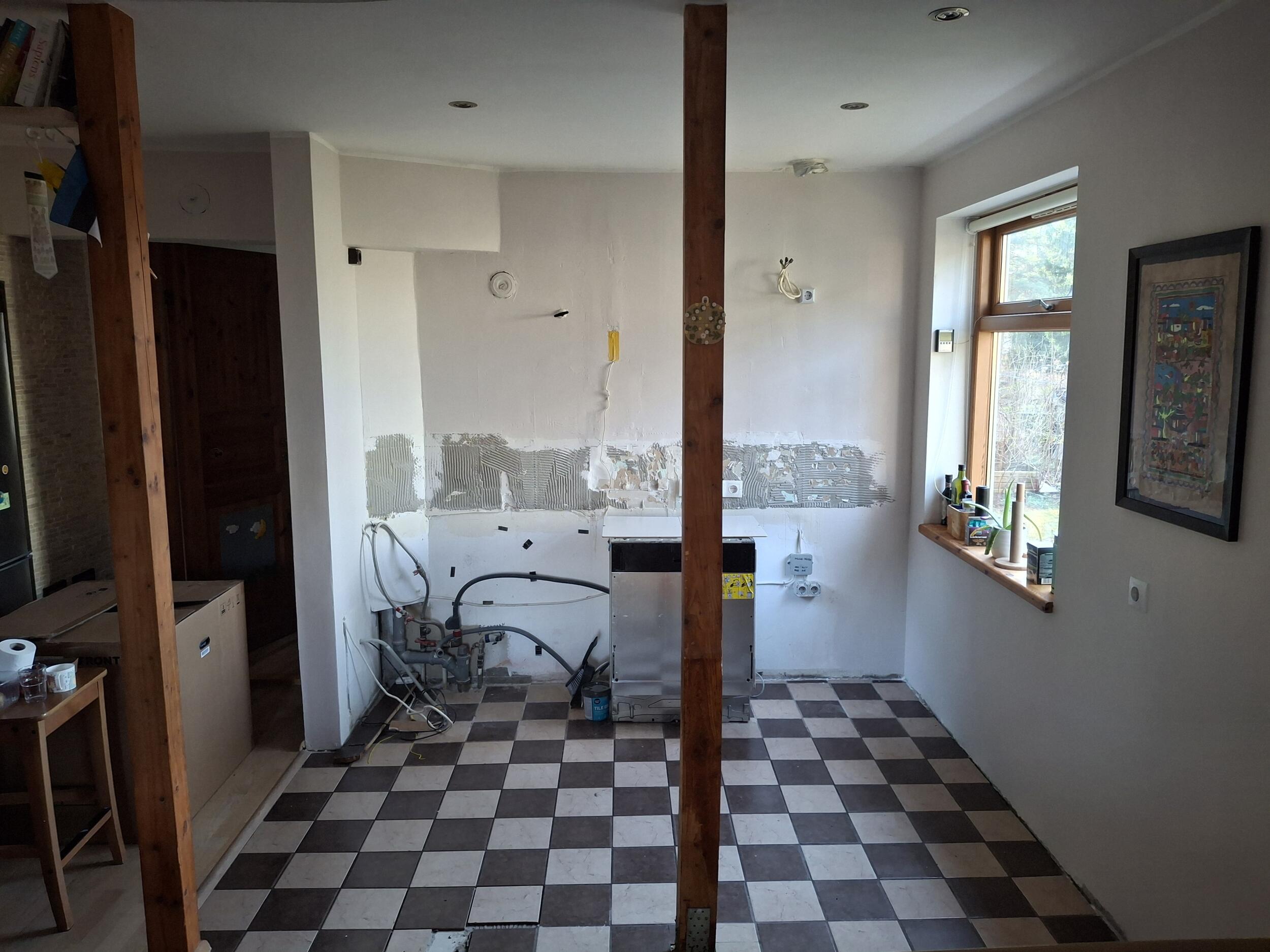 Ainult 1 pisiasi ei vasta projektile - seinaäärses ülemises osas on projektis riiul poolik aga peaks ulatuma kapini. Ilmselt on vaja osta uus paneel ning seda natuke lõigata et sobituks reaalsete mõõtmetega.