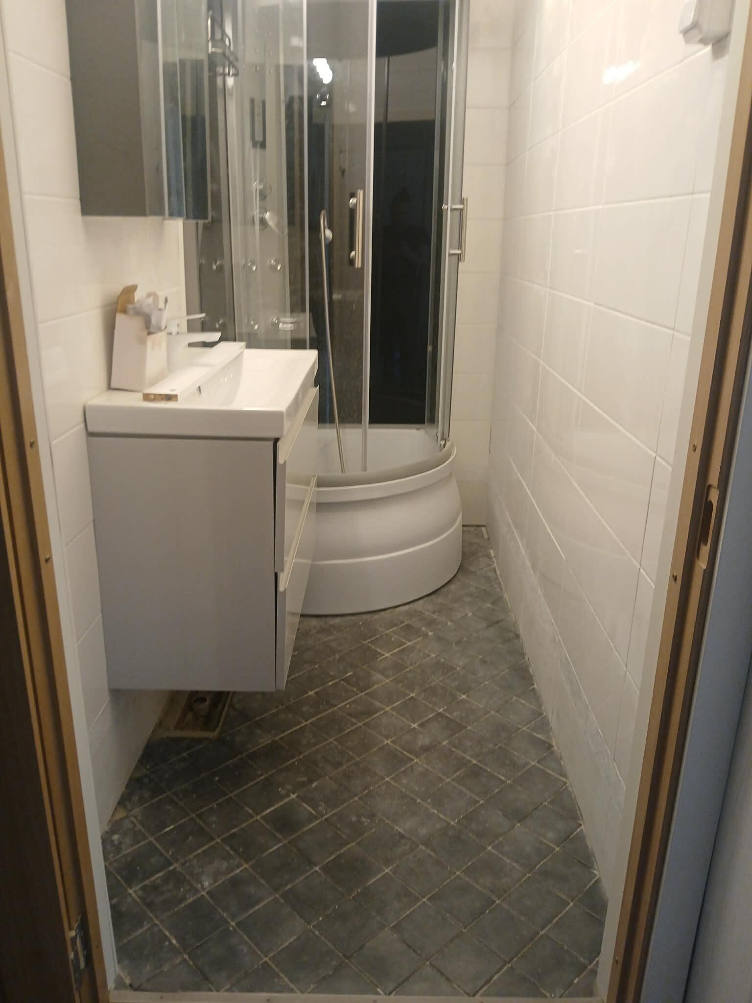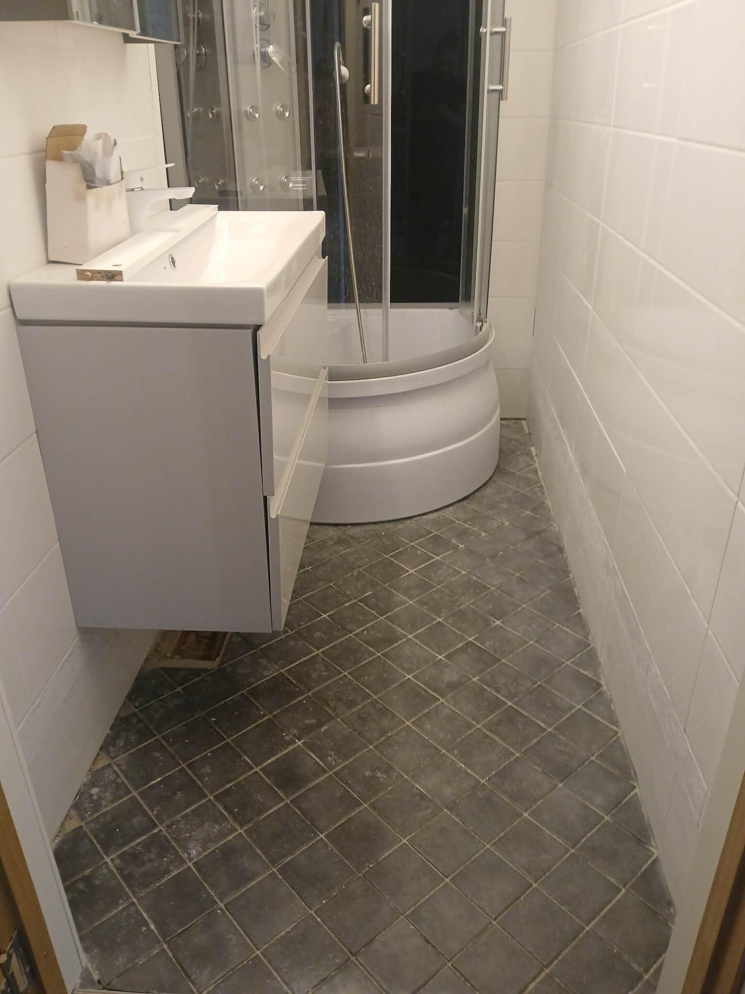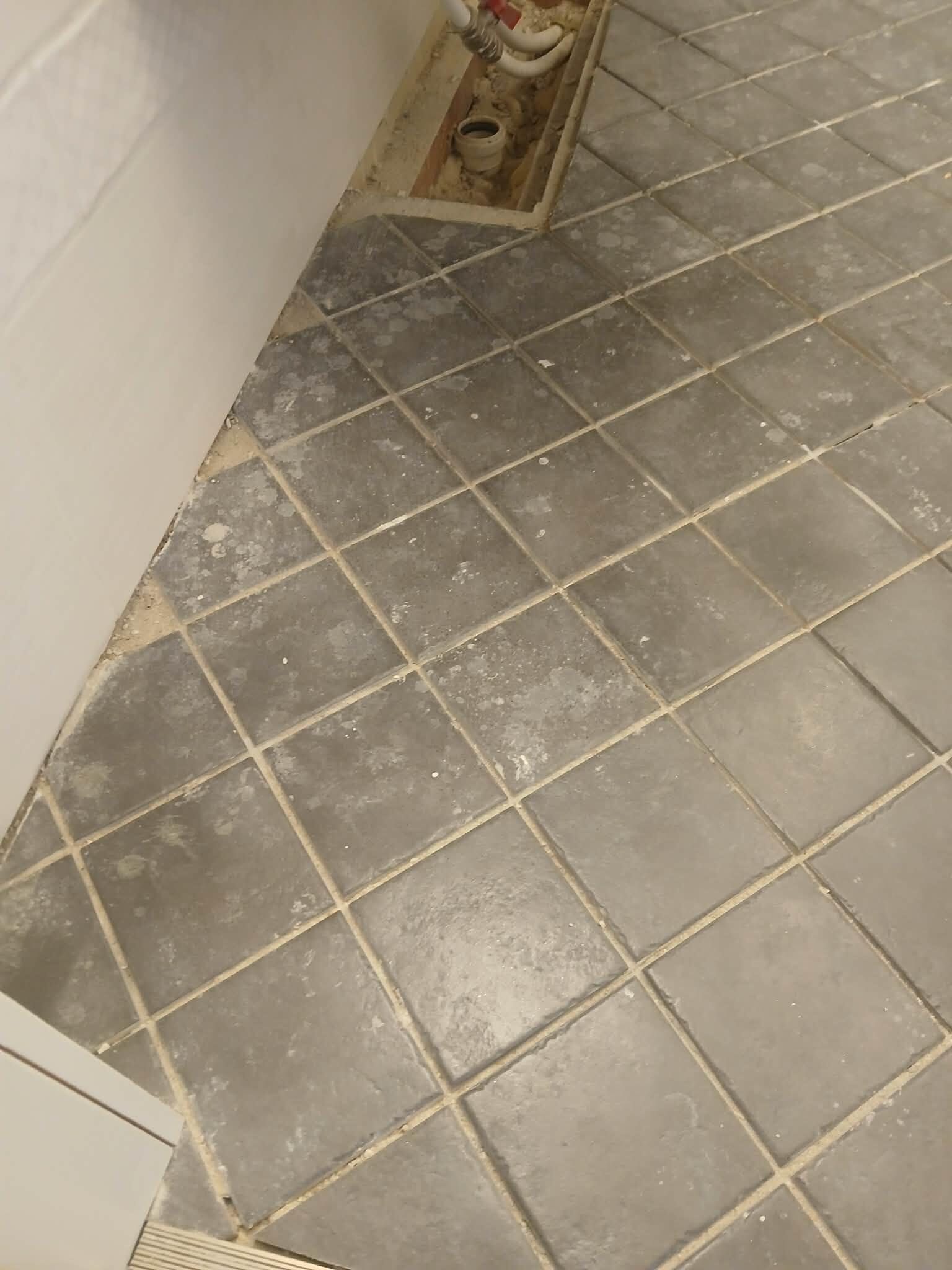Põrand on plaaditud, kuid plaatidel on vuugivahed tolmu täis ja plaatide pind on määrdunud. Töömahukas osa on plaadipindade puhastamine (seal on mingi krundi vms plekid peal-vt piltidelt). Plaadipindade puhastamine veidi raske, mustus tuleb raskelt maha- võib kasutada traatharja või trelli ots käivat traatharja või kui on parem lahendus siis midagi muud.