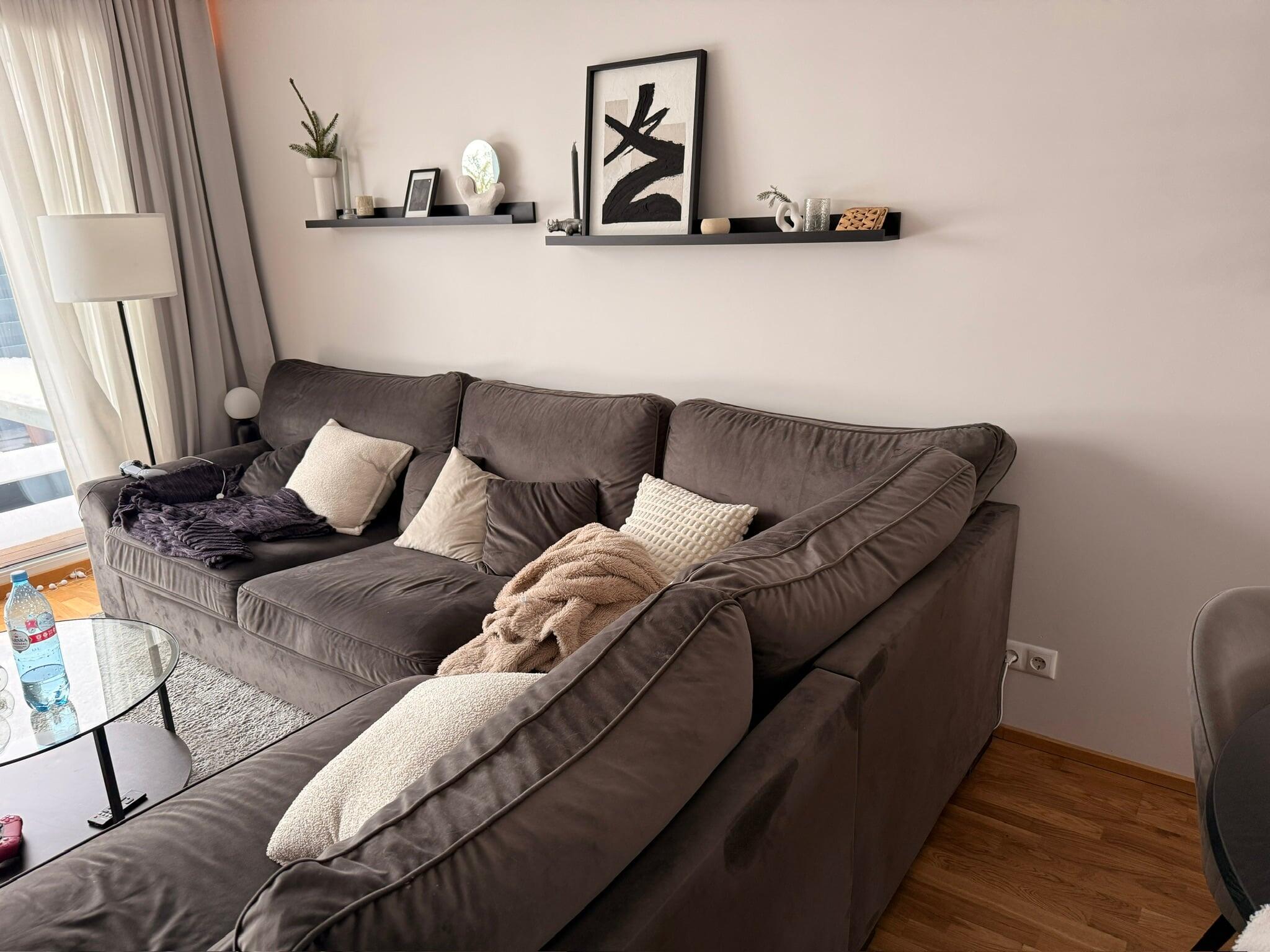 Soovin olemasoleva pistiku tuua parempoolsest seinast (diivani juurest) akna alla teise seina otsa. Vahemaa ca 3.3–3.4 m.