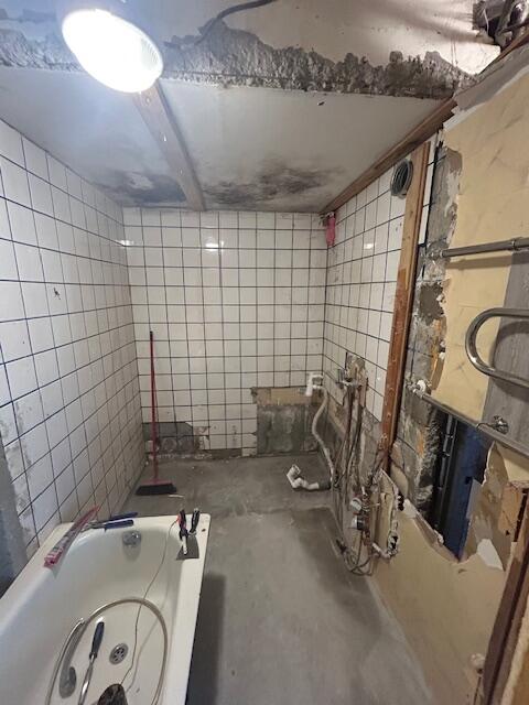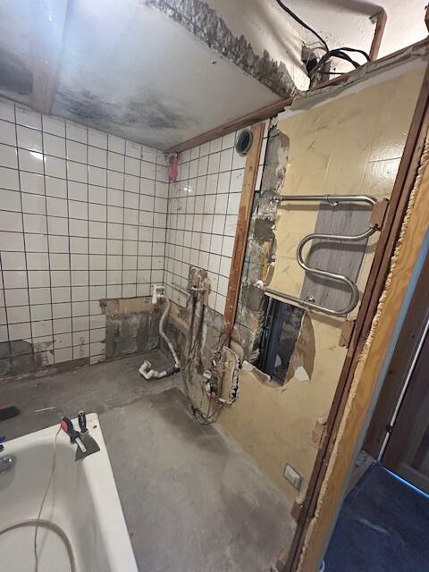 Vannituba (4,7 ruutmeetrit). Hallituse eemaldamine, tõrje. Torutööd, plaatimine (põrand, seinad), hüdroisolatsioon, viimistlus jne, v.a elekter. Paigaldada elektriline põrandaküte, vann + segisti, wc pott (uus - ühendada püstiku), valamu +segisti + elektriühendusega peegel, valamukapp, pesumasin, käteräti radiaator. Veemõõdukite ümbertõstmine / seina sisse ehitamine.