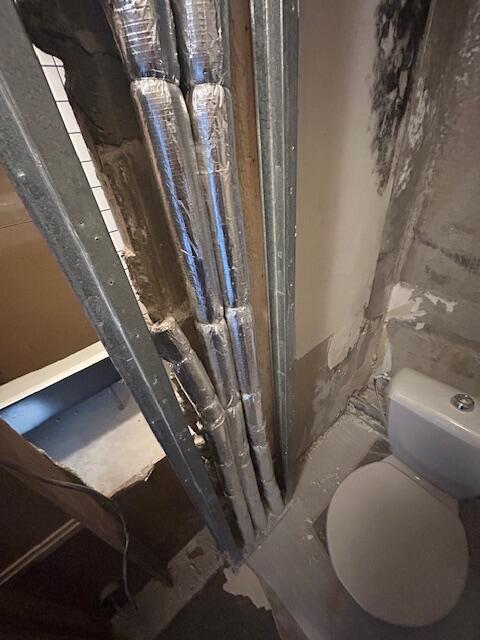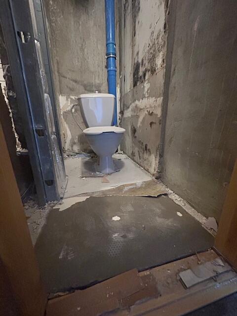 WC (1,5 ruutmeetrit). Hallituse eemaldamine, tõrje. Siseviimistlus värv. Paigaldada wc pott, valamu + segisti.
