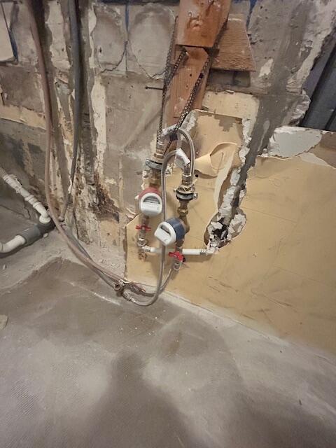 Torutööd köögis. Veemõõdikute ümberpaigutamine. Torude toomine valamu ja nõudepesumasina valmisolekuks.