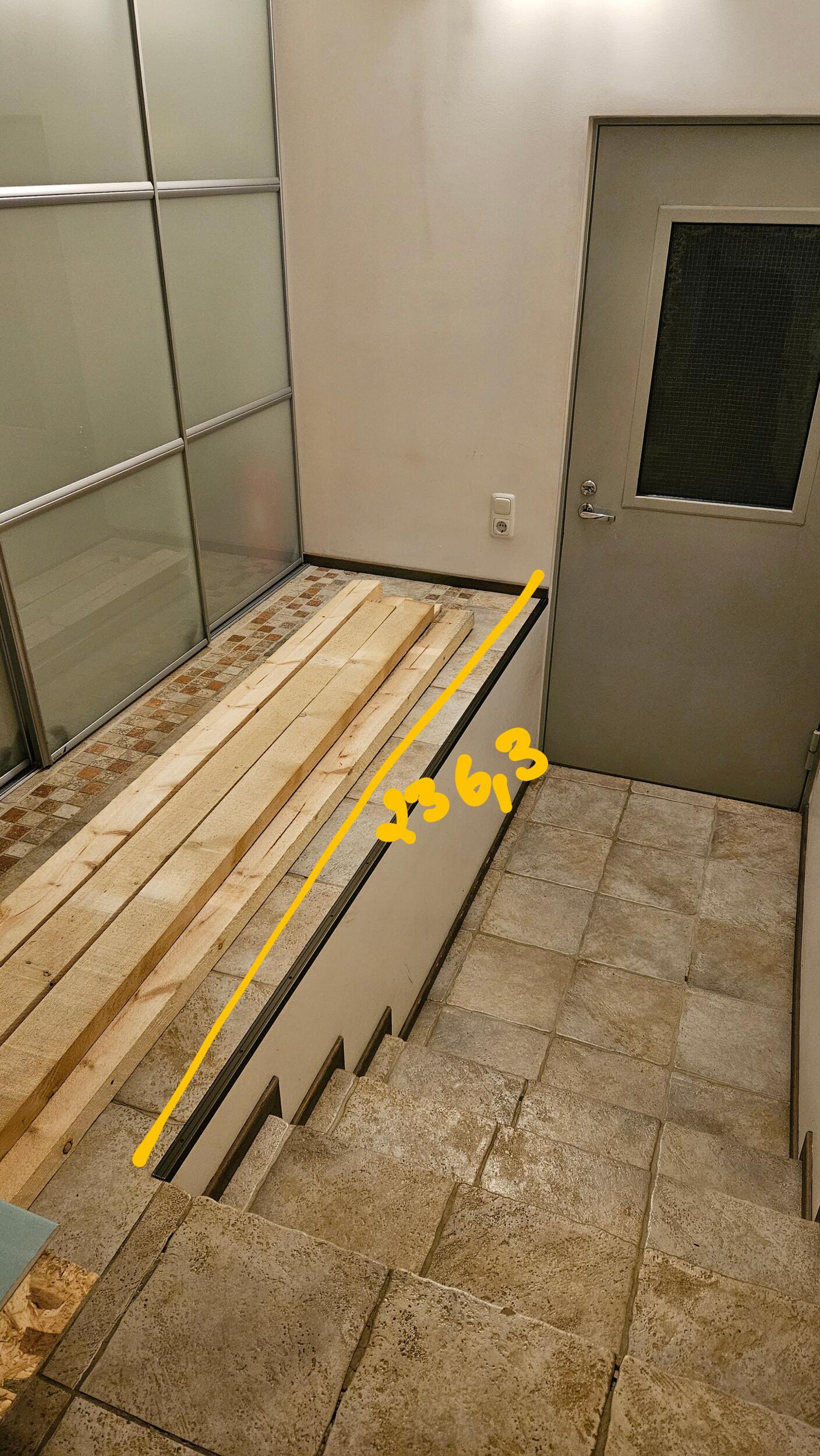 Soovin trepi käsipuude ja piirete tegemist. Käsipuud ja piirded peaksid olema puidust (heledam soe toon, nt tamm). Lisatud pildid, mis näitavad asukohti ja orienteeruvaid pikkuseid. Lisaks on vaja trepi alune kinni ehitada.