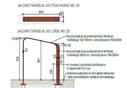 Vaja on paigaldada 102tk musta värvi jalgrattahoidikut ning 25tk punast.