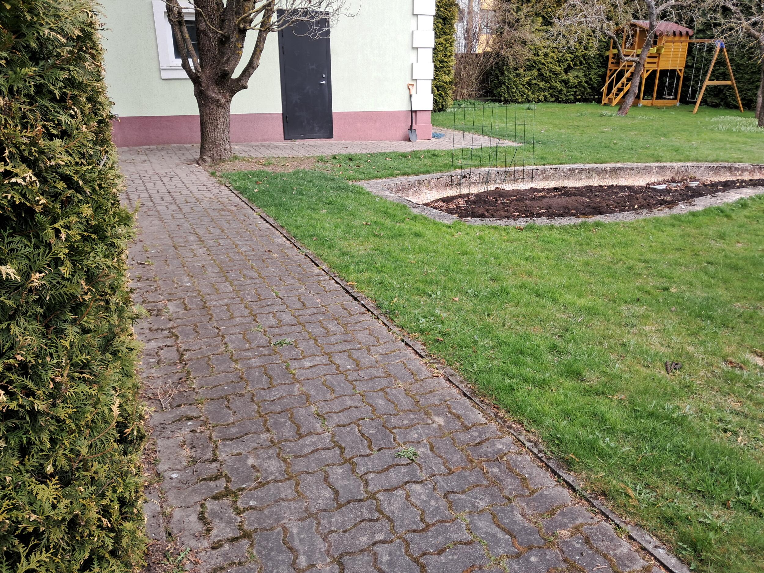 Vaja on olemasolev sillutuskivi üles võtta ja puhastada, alust tasandada, kivid tagasi laduda ja vuugid liivaga täita. Äärekivid on olemas.