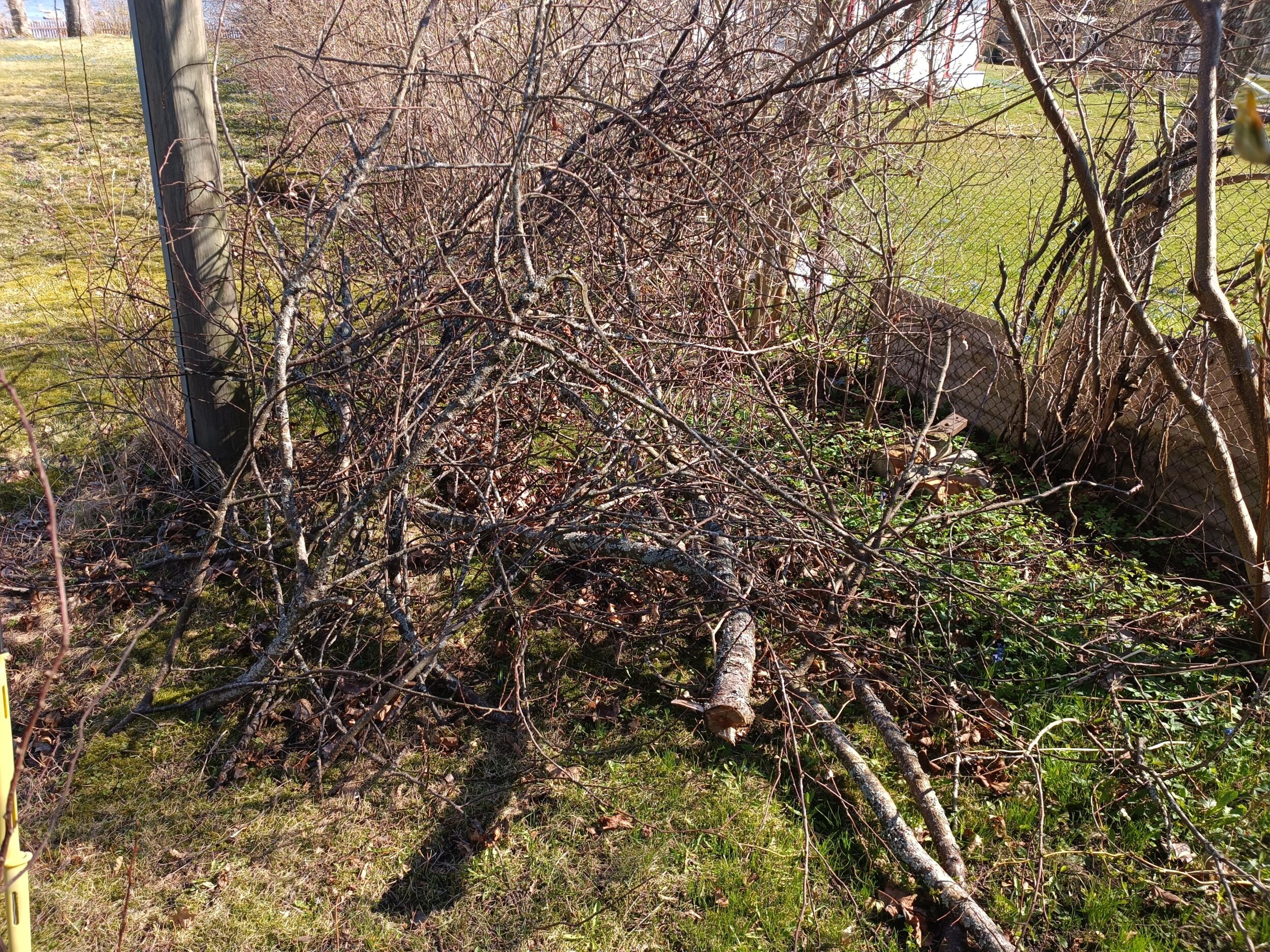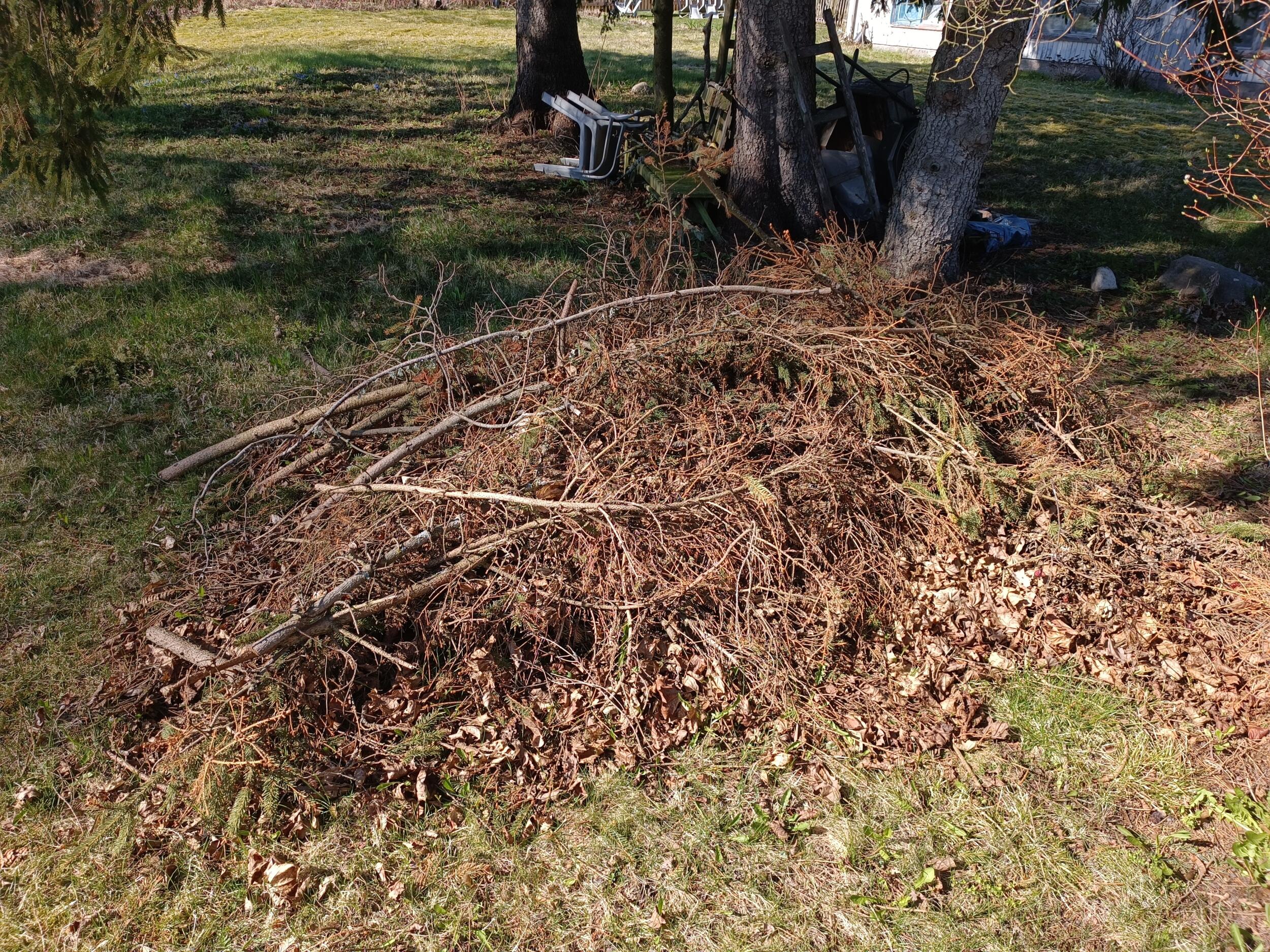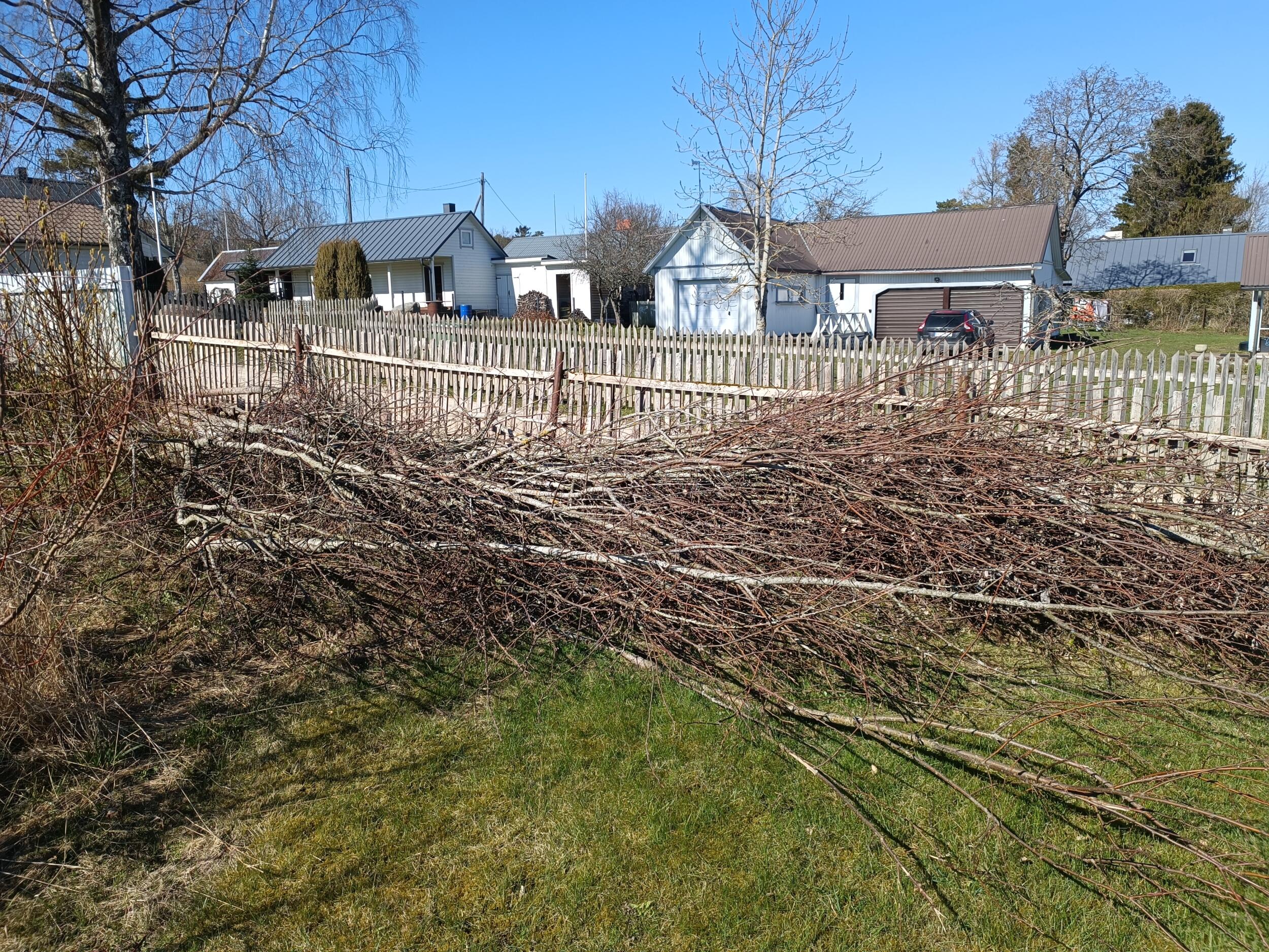 Elektriliinide haldamise ja hekilõikuse tulemusena langetatud hulk puuoksi, mida vaja krundilt ära vedada ja utiliseerida.