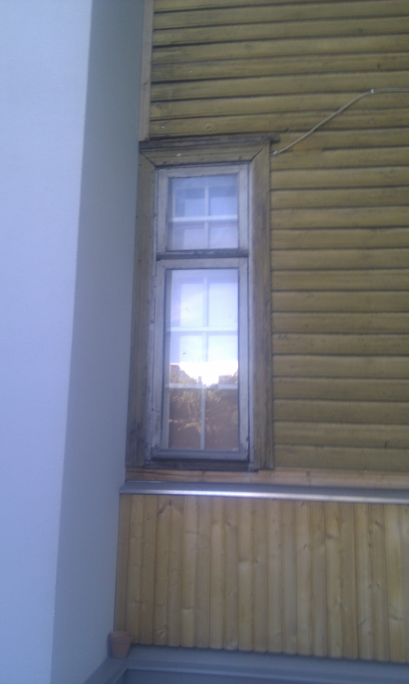 Sissepoole avanevaid ja ülevalt kinniseid, valgetvärvi aknad.