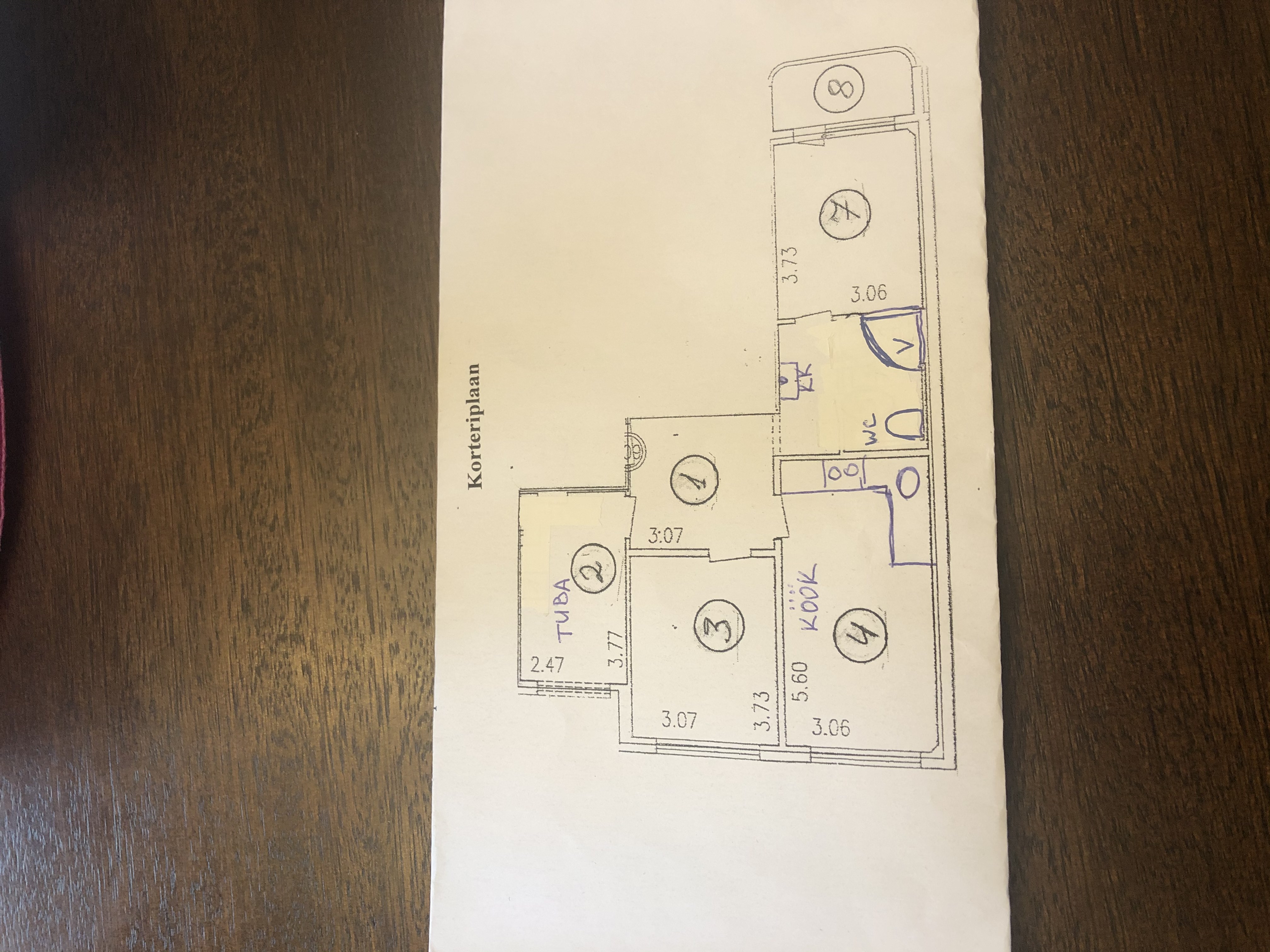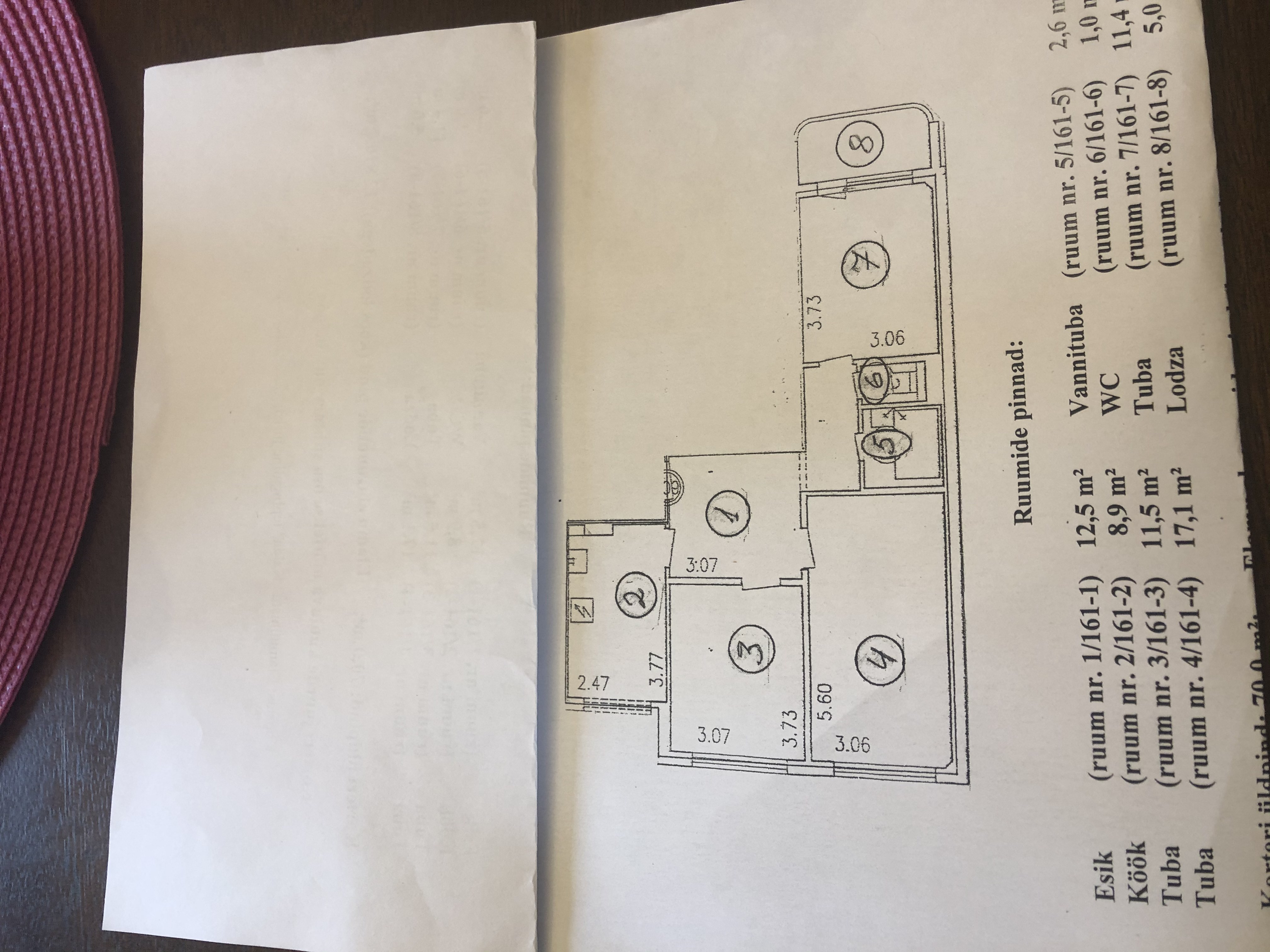 Sooviks hinnapakkumist korteri ümberehituse seadustamiseks. Korteril ühendatud WC ja vannituba koos koridoriga.Köök oli paigutatud suures elutoas ehk vahetati ümber. Kõik kandvad seinad on terved ja kõik ukseavad on terved. Korter asub Tallinnas, Lasnamäel, 9 korrulises majas. Remont oli tehtud 14.a tagasi. Töö lõpptulemus peaks olema see, et on tehtud muudatus ehitusregistris.