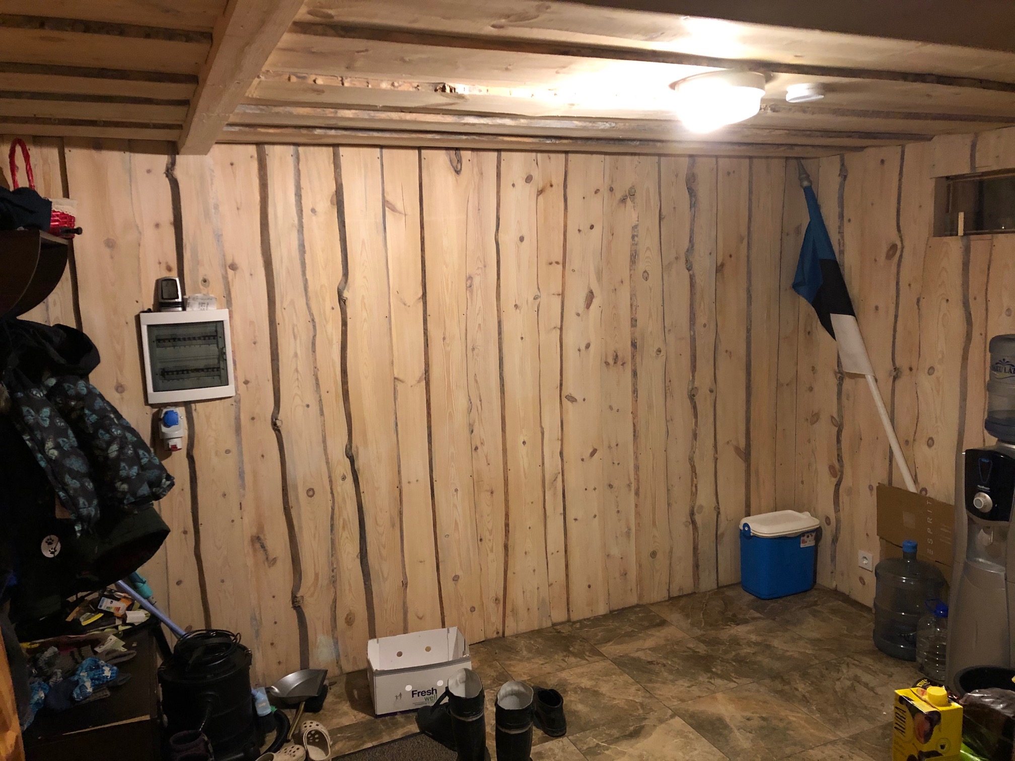 Hetkeolukord. Umbes 2015 abihooneks ehitatud lintvundamendiga puitkarkassmajas puudub veevärk täielikult. Majas on ca 12m2 suurune eesruum (lisatud foto - laudisseinad ja -laed, põrandal betoonile laotud suured keraamilised plaadid). Samas ruumis on ka elektrikaitsmete kapp, kust on seinte seest veetud maja olemasolevad elektriühendused (kaablid seinapistikuteni, valgustite-lülititeni jne). Vett puurkaevust majani ja kanalisatsiooni välisühendusi veel ei ole, kuid olemas on projekt, ehitusluba ja ka tulevane välistööde teostaja - eesmärk on sisetööd enne välistöid valmis saada (konsulteerides vajadusel välistööde teostajaga).