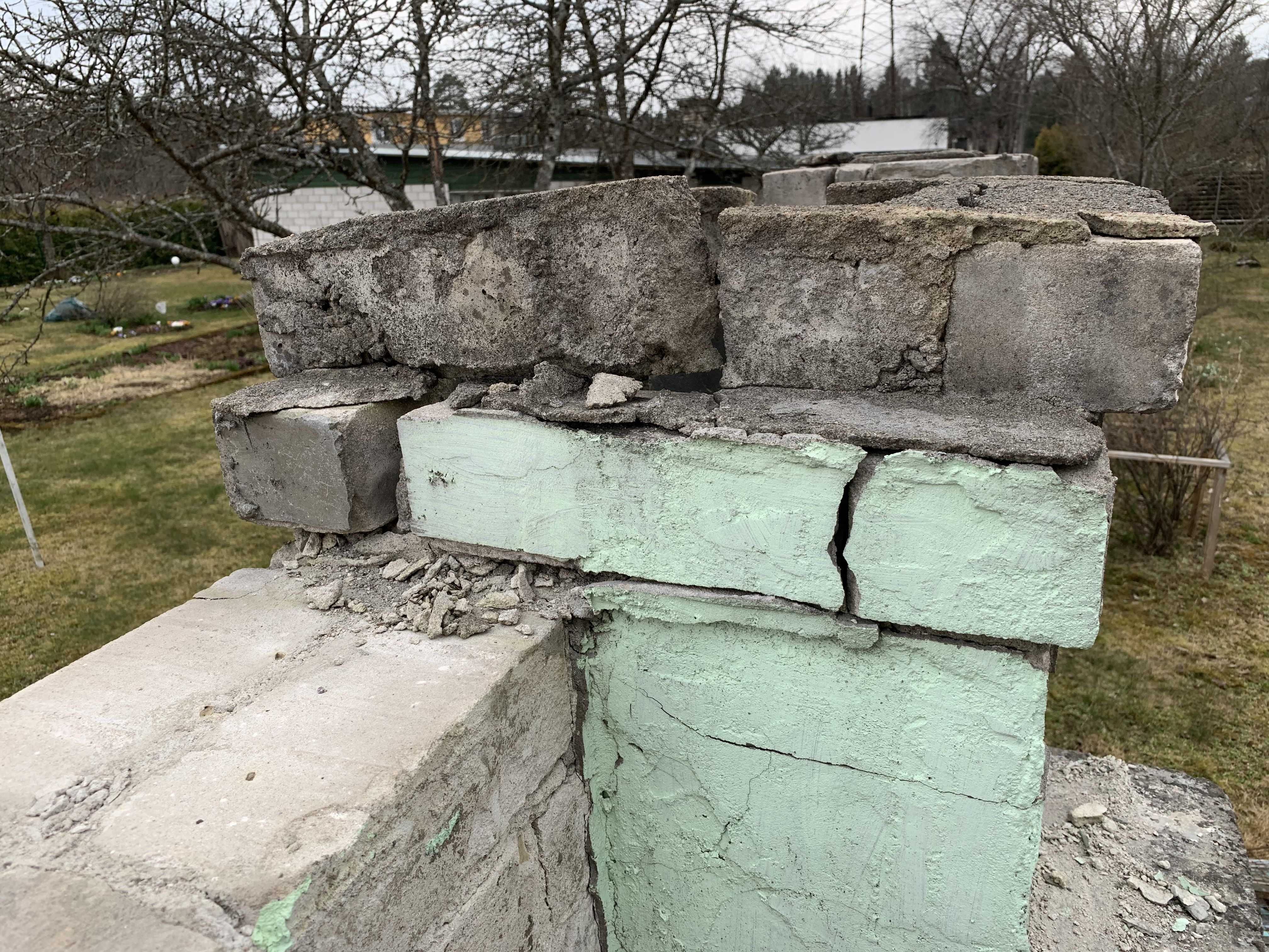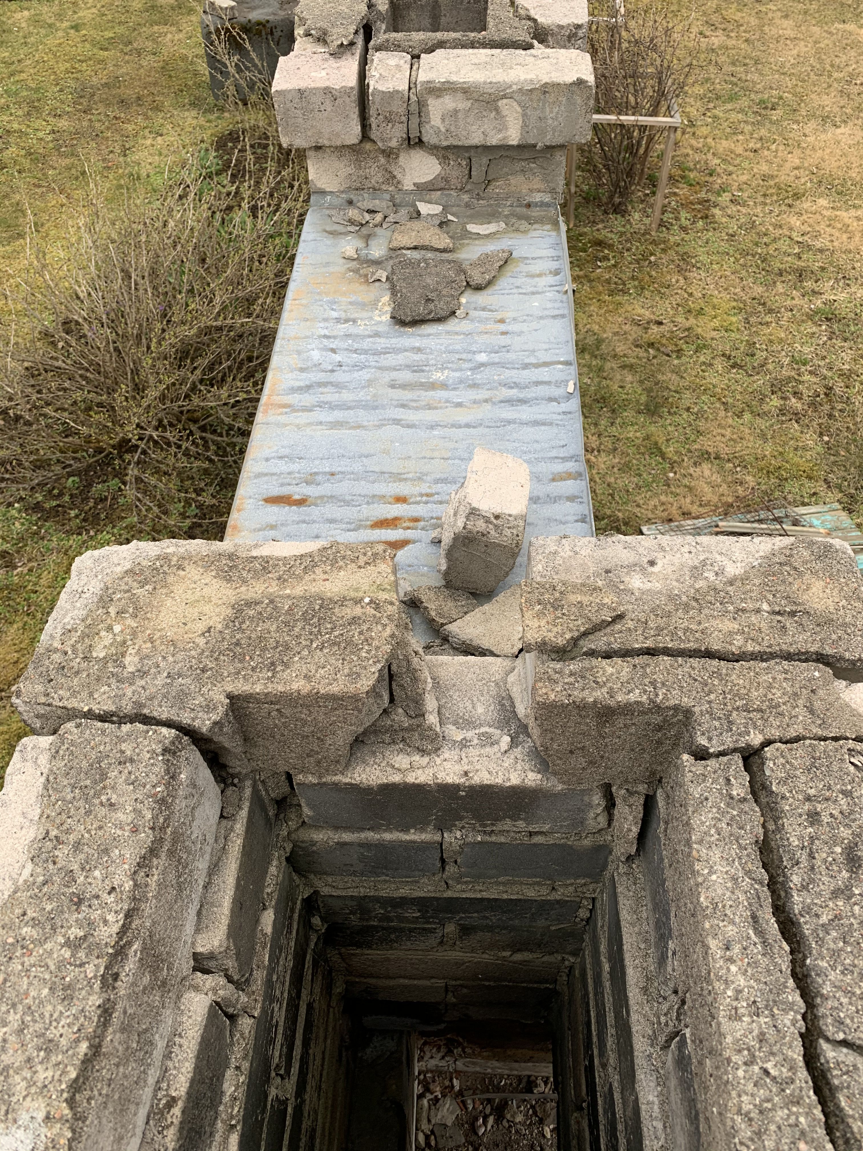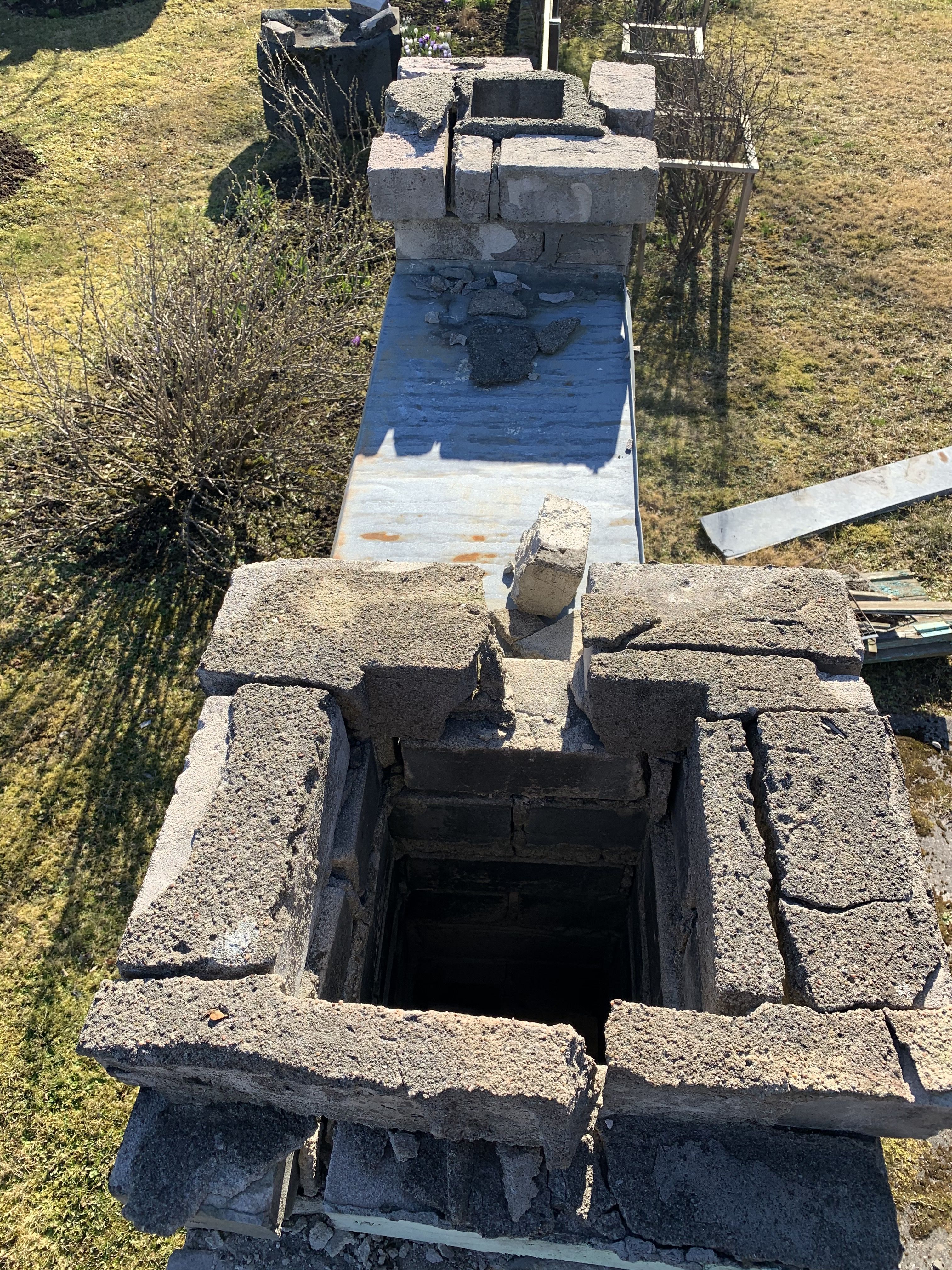 4. Parandama peaks ka mõlema korstna pitsid, tellistega. Ehk et kõik korstna tükid peaksid kinni olema.
