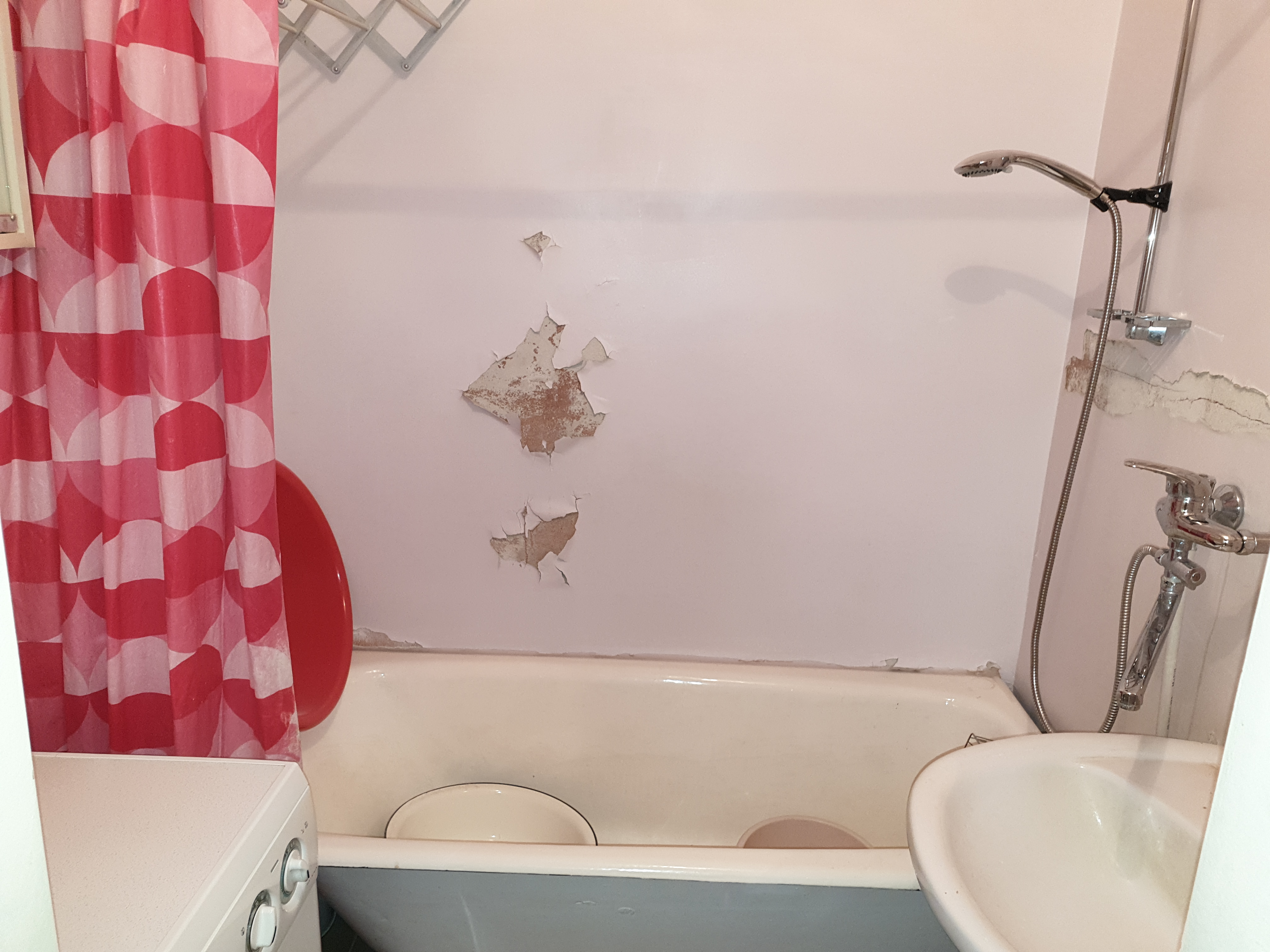 Eemaldata tuleks vannitoa ja wc vaheline vahesein ja utiliseerida kõik vana (valamu, wc-pott ja vann ja muud ehitus jäägid).