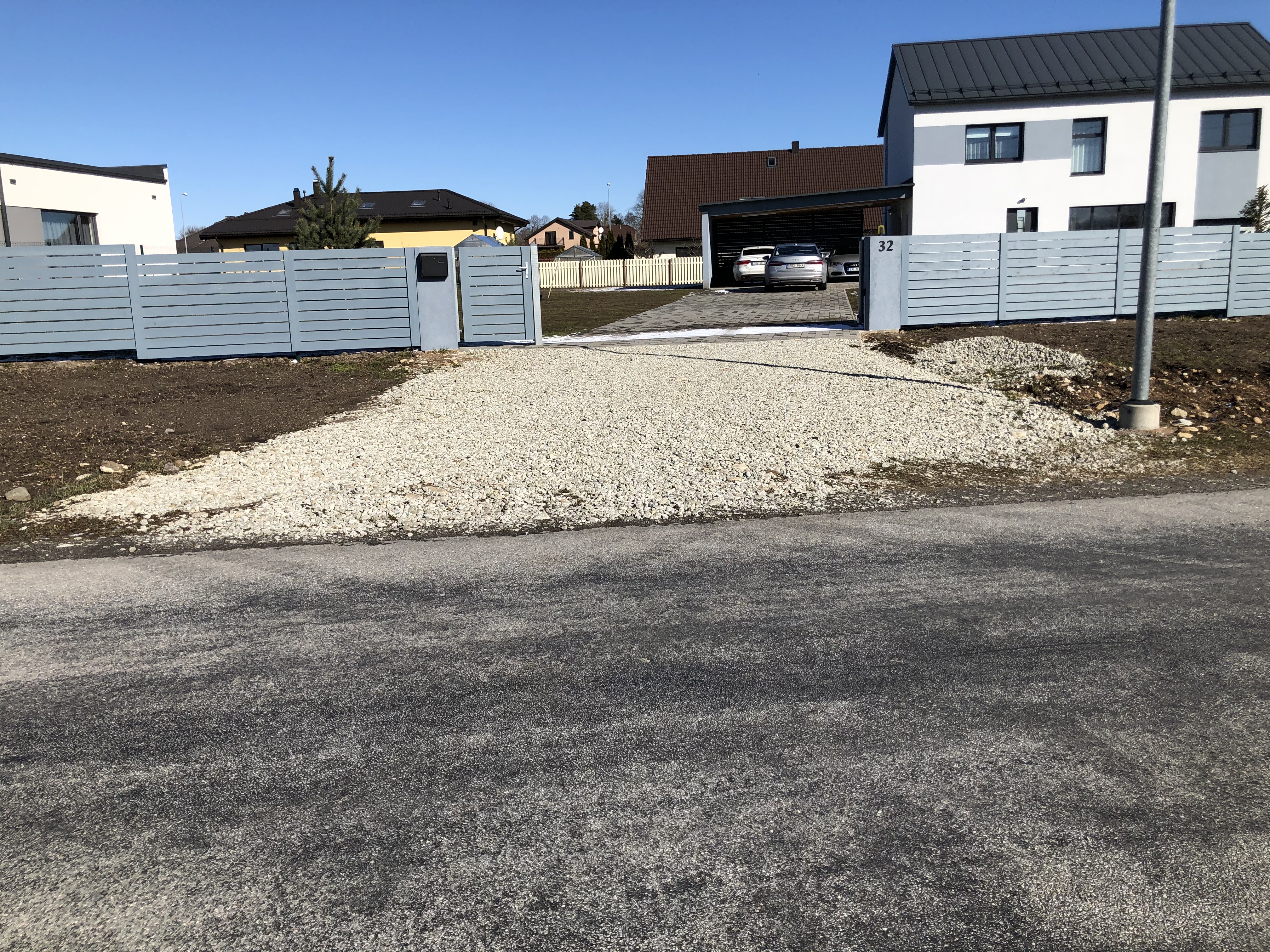 Olemasoleva sissesõidu tee aluspõhja ülevaatus ja vajadusel tihendamine. Sama tee asfalteerimine ja äärekivide paigaldamine. Asfalttee peab ühelt poolt jooksma kokku maja esise asfalteeritud sõiduauto teega ja teisalt sillutisega, mis viib majani. Töö peab olema vastupidav ning viimistletud.