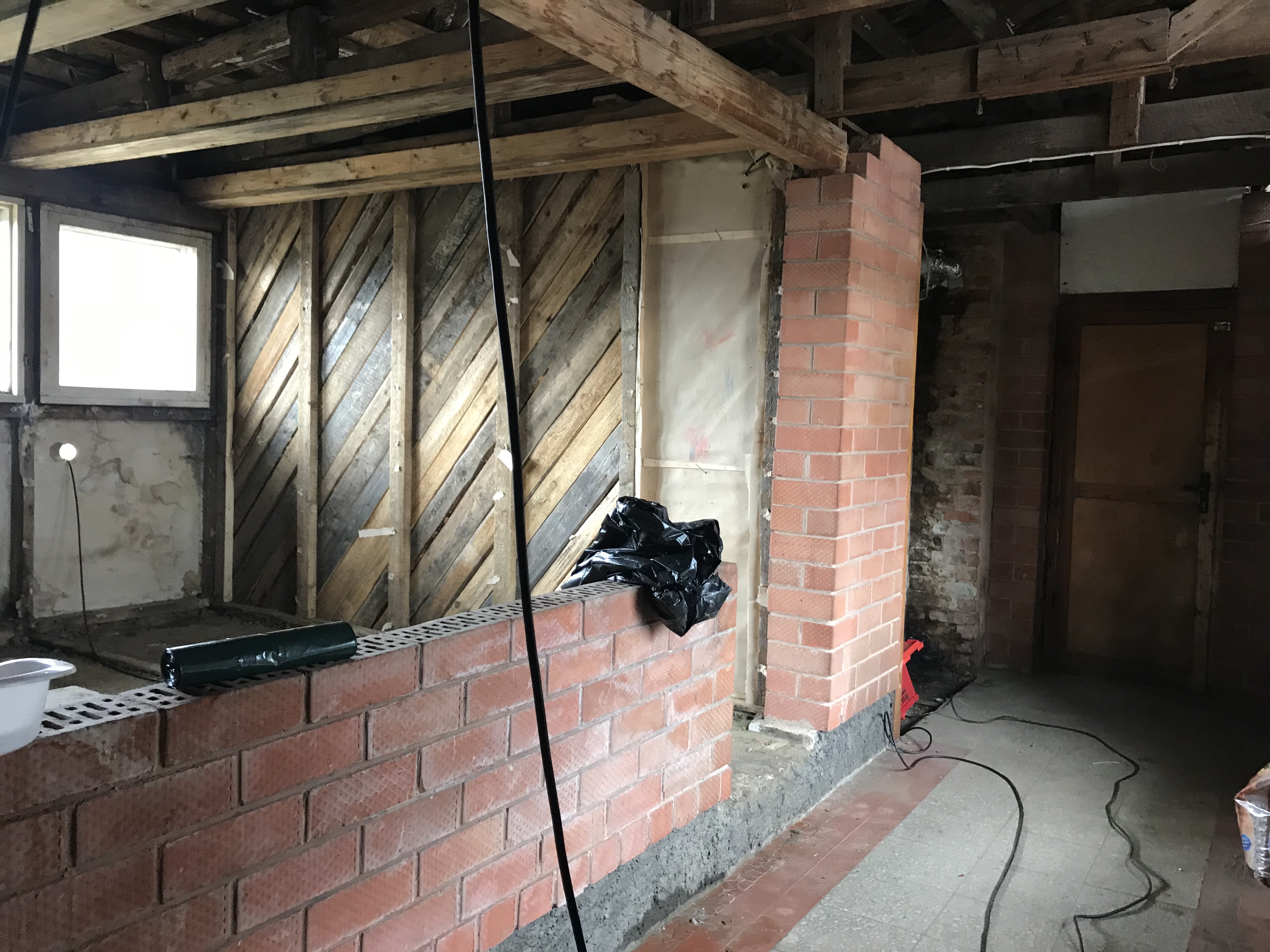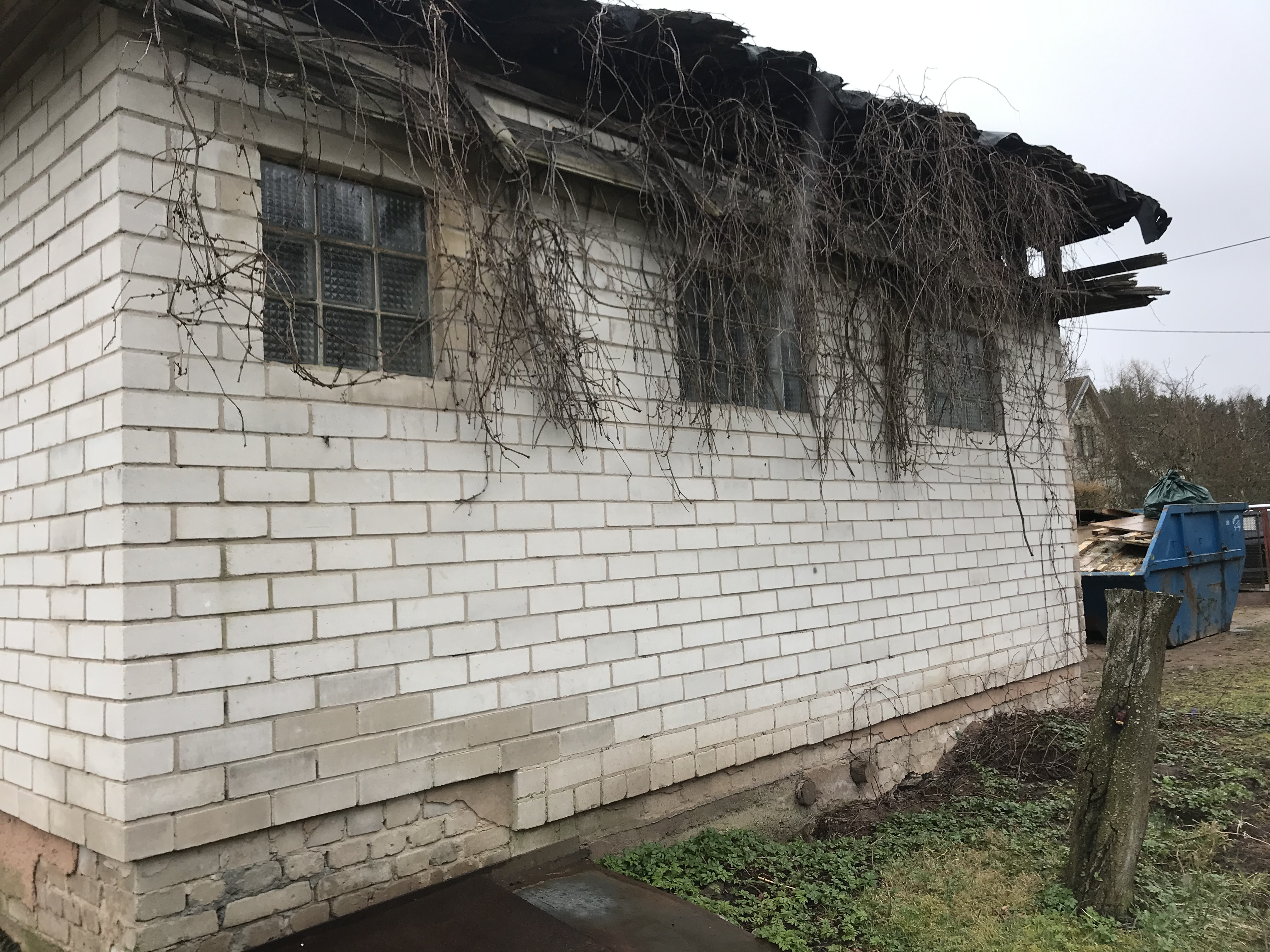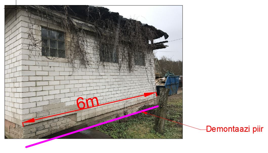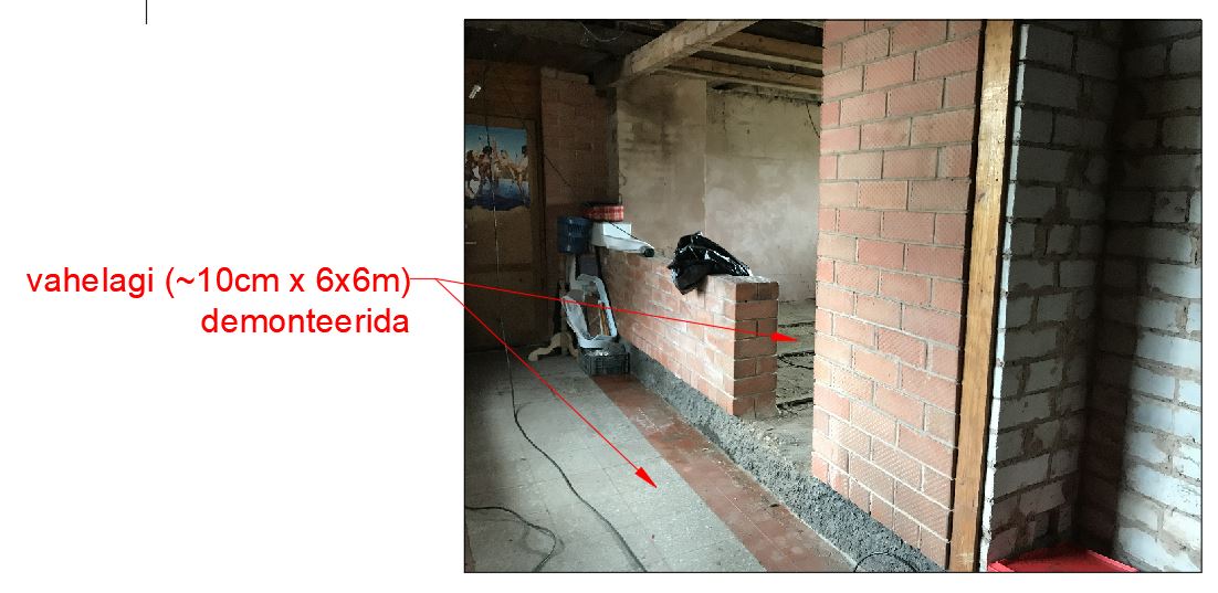 Hoone demonteerida piltidel näidatud kõrguseni (olemasoleva maapinnani). Demonteeritava kivimaterjaliga (silikaattellised, vahelagi) täita kelder (NB! tihendada).
