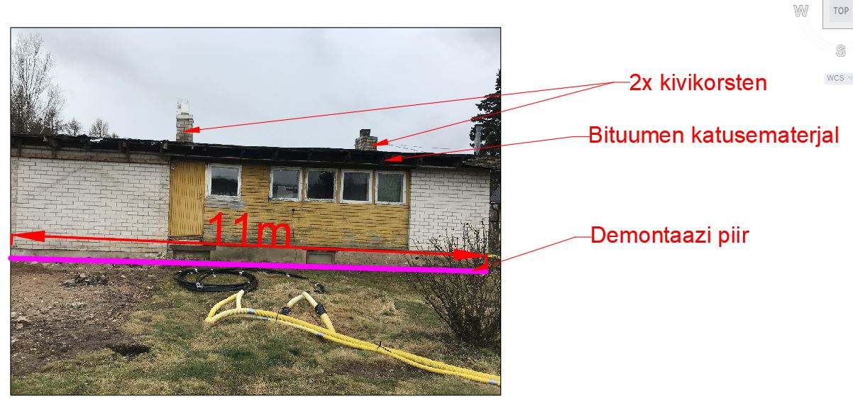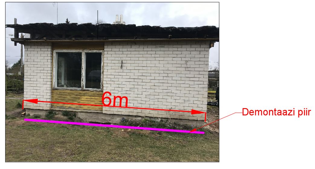 Hoone lammutus näidatud piirini, ehk maapinnani ja materjali äravedu, ehk plats puhtaks, kõik kokku 1000 eurot.