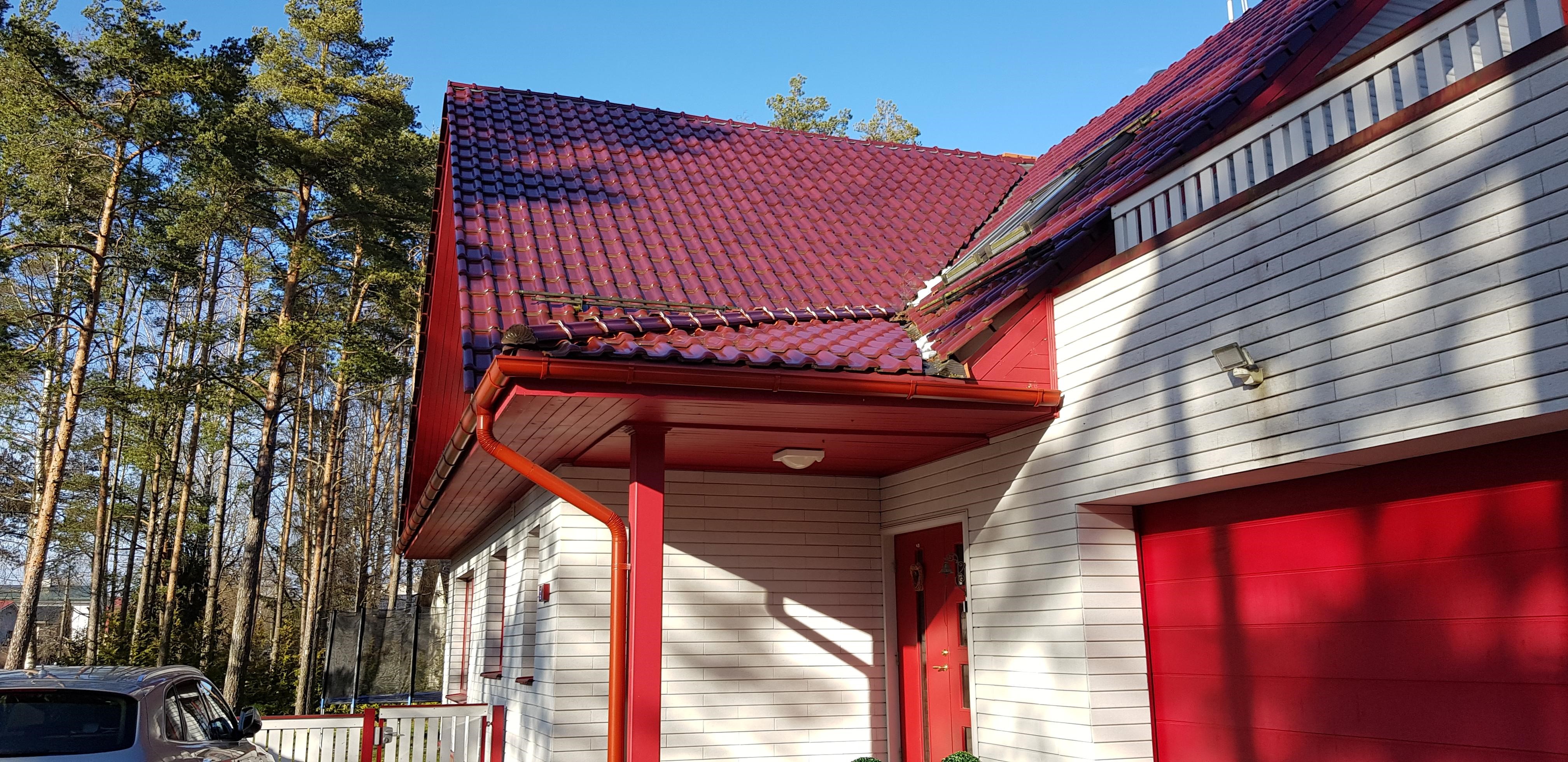 Maja sissekäigu kohal oleva variaktuse remont.Vesi jookseb tuulekasti ning nurk on alla vajunud.