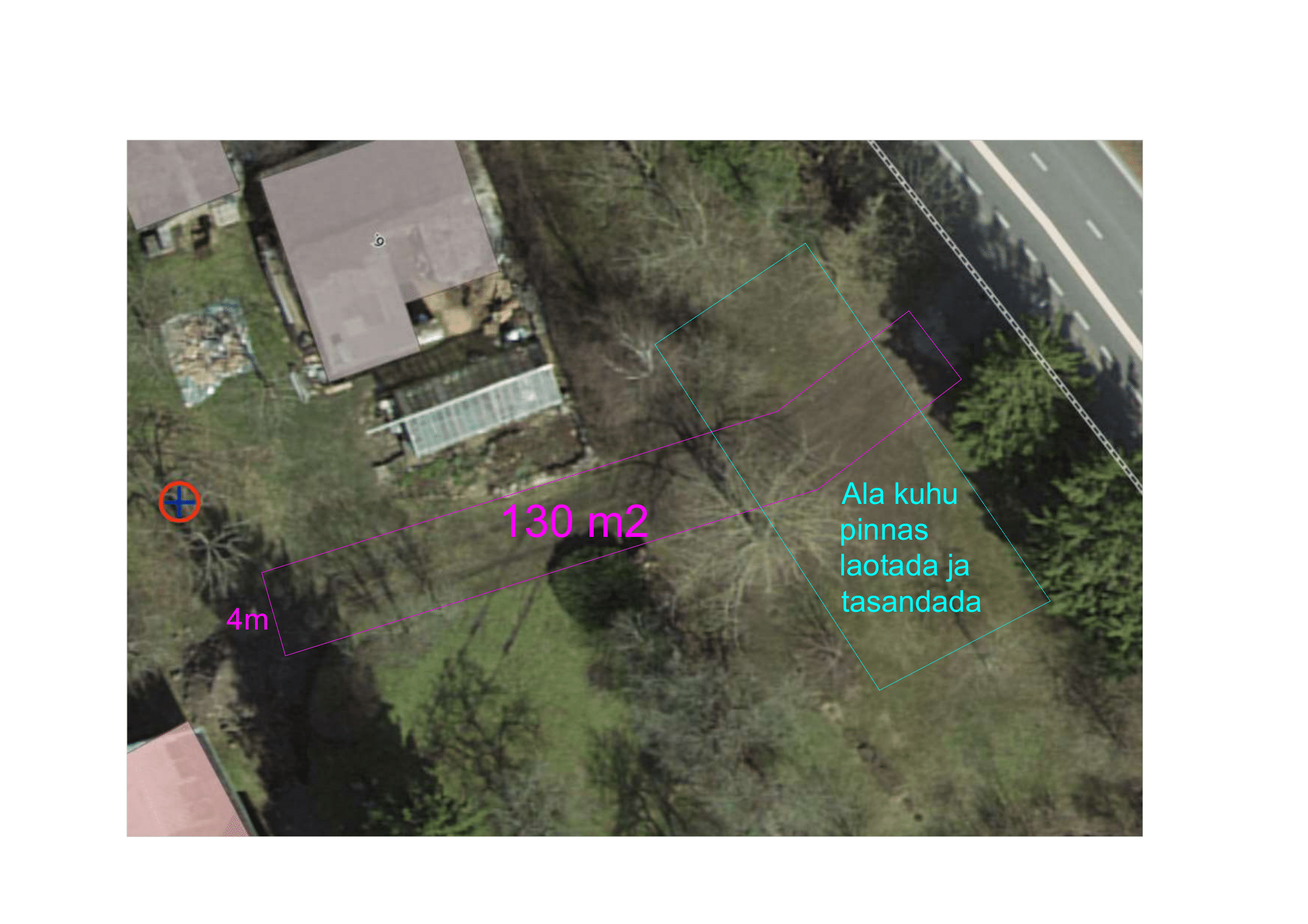 -Kooritud pinnas laotada samale krundile (osaliselt sissesõidutee alla ehk tee algust tõsta - näidatud kaardil) ja tasandada