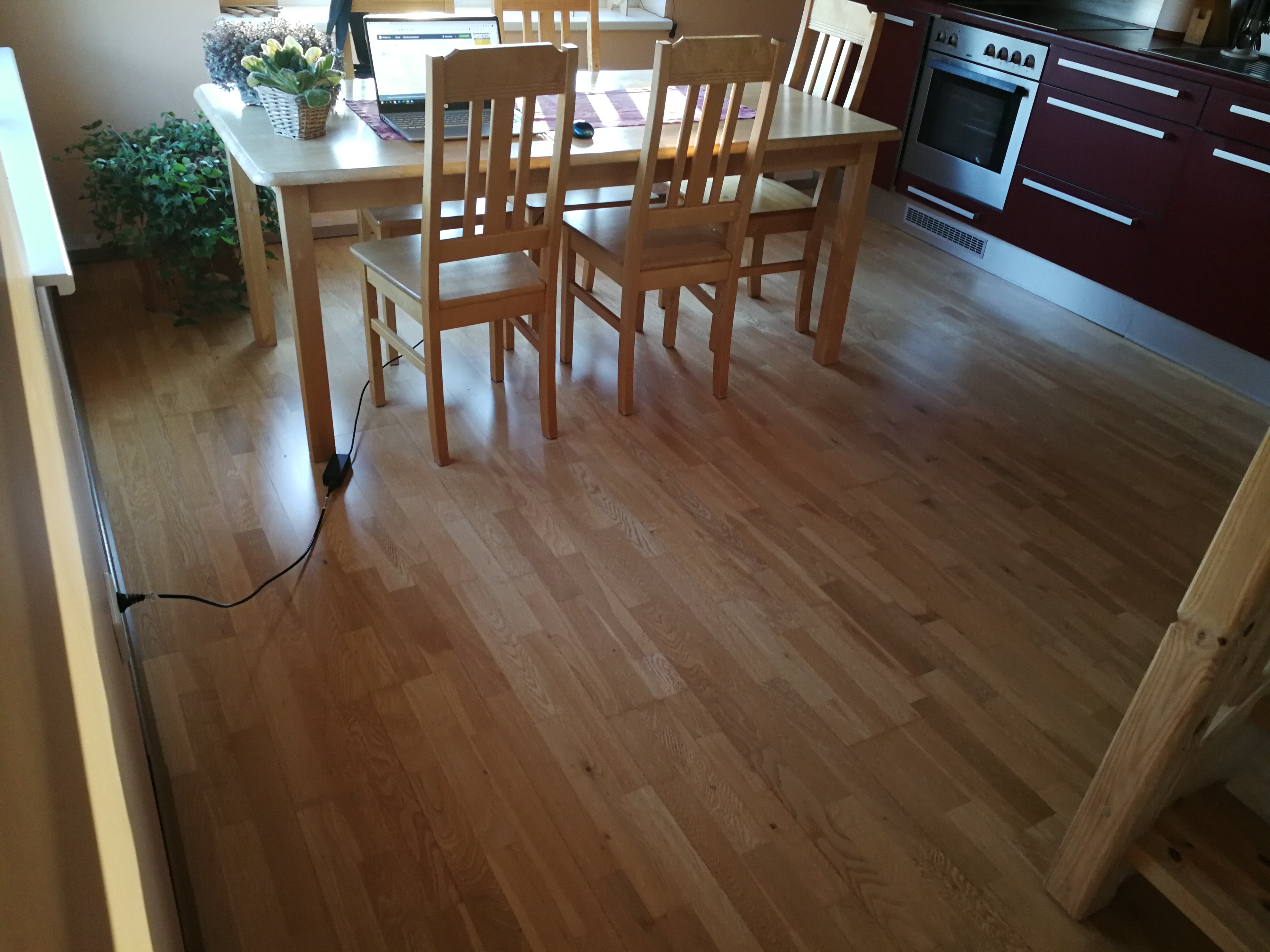 Plaaditud köögi põrand peab praeguse põrandaga jääma samale kõrgusele, kuna köögi põrand läheb sujuvalt üle elutoa parketiks.