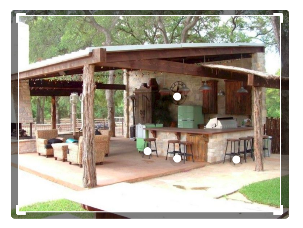 Idee sarnane nagu lisatud pildil. Üks sein maakivist (7m lai), teised küljed lahti. 2 palkposti (eraldi ahju ühe posti asemele ei ole vaja). Ainsa seina sees suitsuahi ja pizzaahi/kamin. Katus kerge kaldega viilkatus, läbipaistev (kihtplastik), eraldi eenduvat osa ei ole vaja. Põrand puit (terrassilauad). Mööblit ja töötasapindasid ei ole tarvis projekteerida.