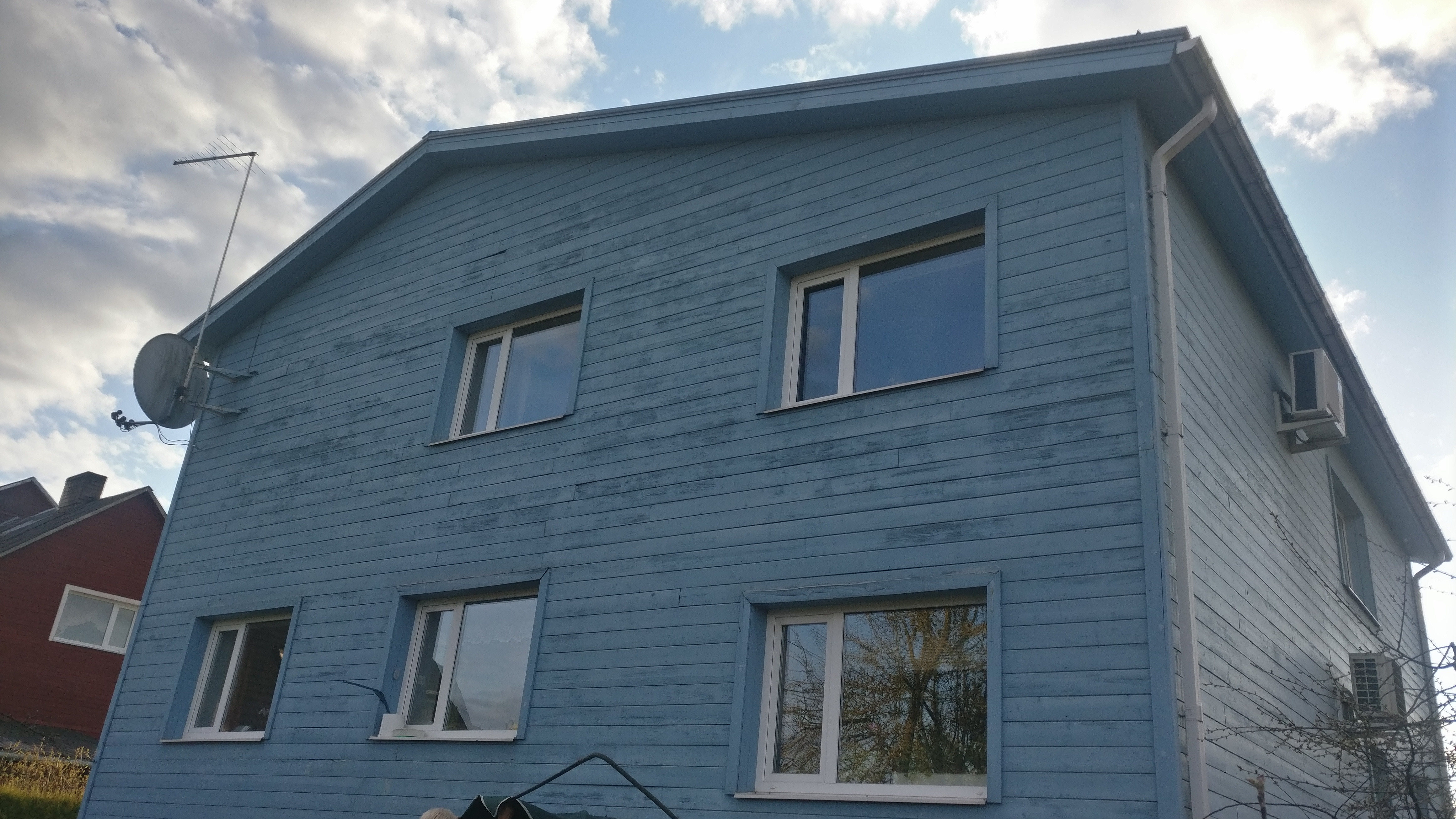 Kaare osa vertikaalne laudis,ülejäänud osa horisontaalne.Tööde hulka kuulub ka aknaavade renoveerimine ja vajadusel aknaplekkide vahetus.Vihmaveesüsteemid jäävad alles,aga tuleb demonteerida ja monteerida,samuti ka peaukse kohal olev varikatus.