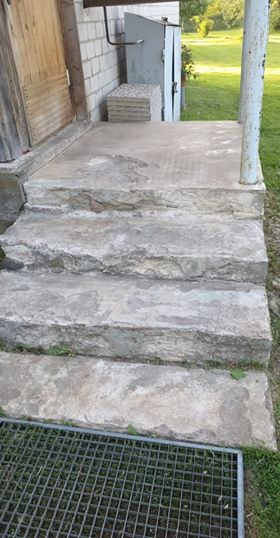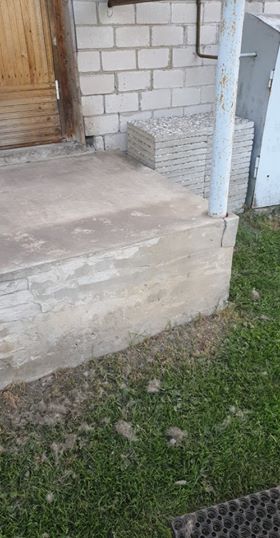 Lagunenud kolme astmega välistrepp vajab parandamist ja plaatimist. Vanas trepis betoonis sügavad augud sees.