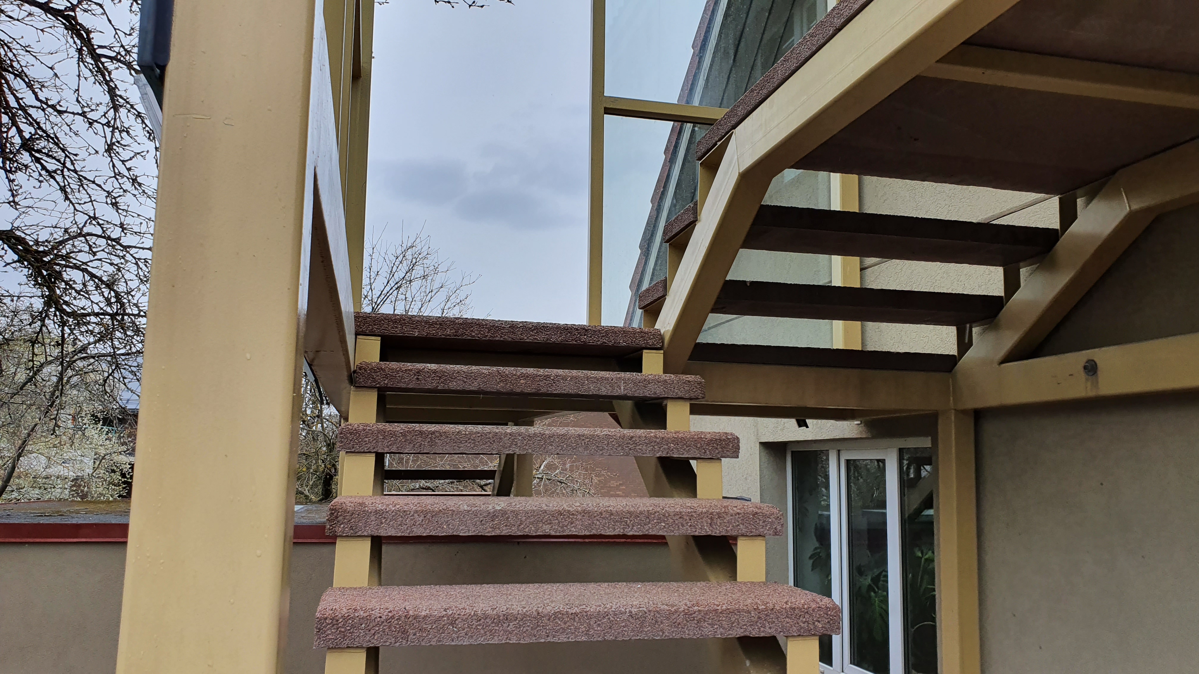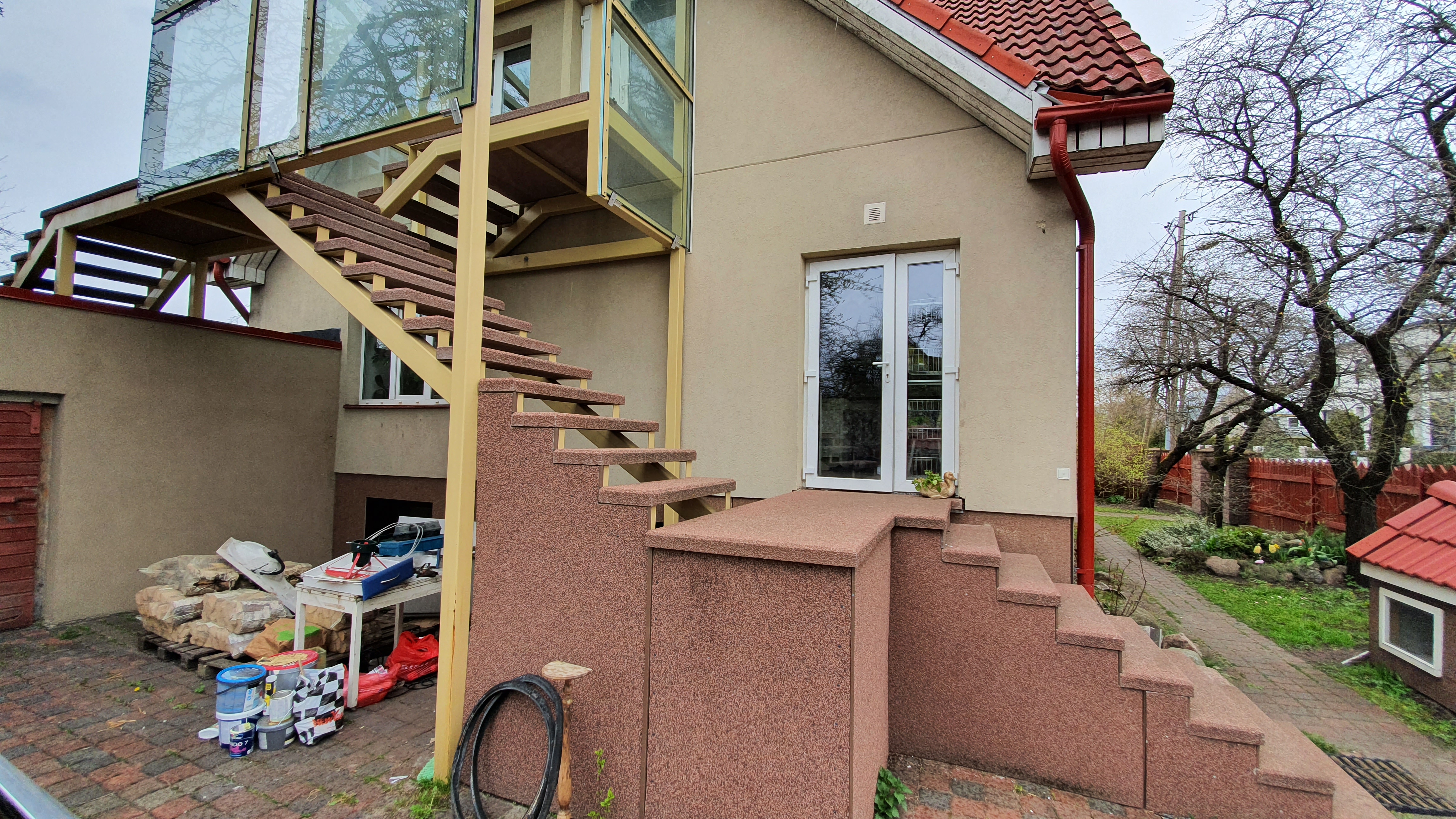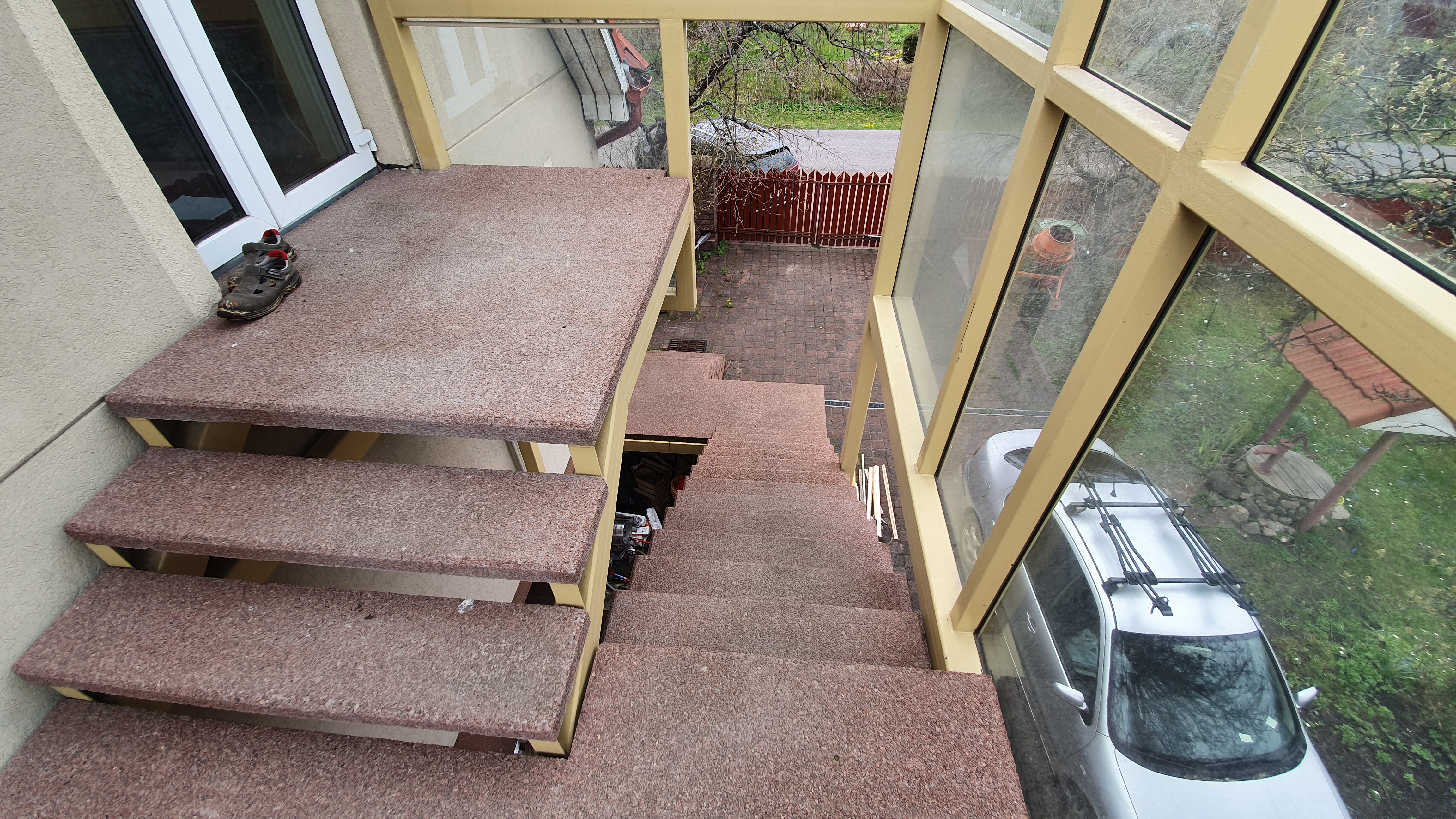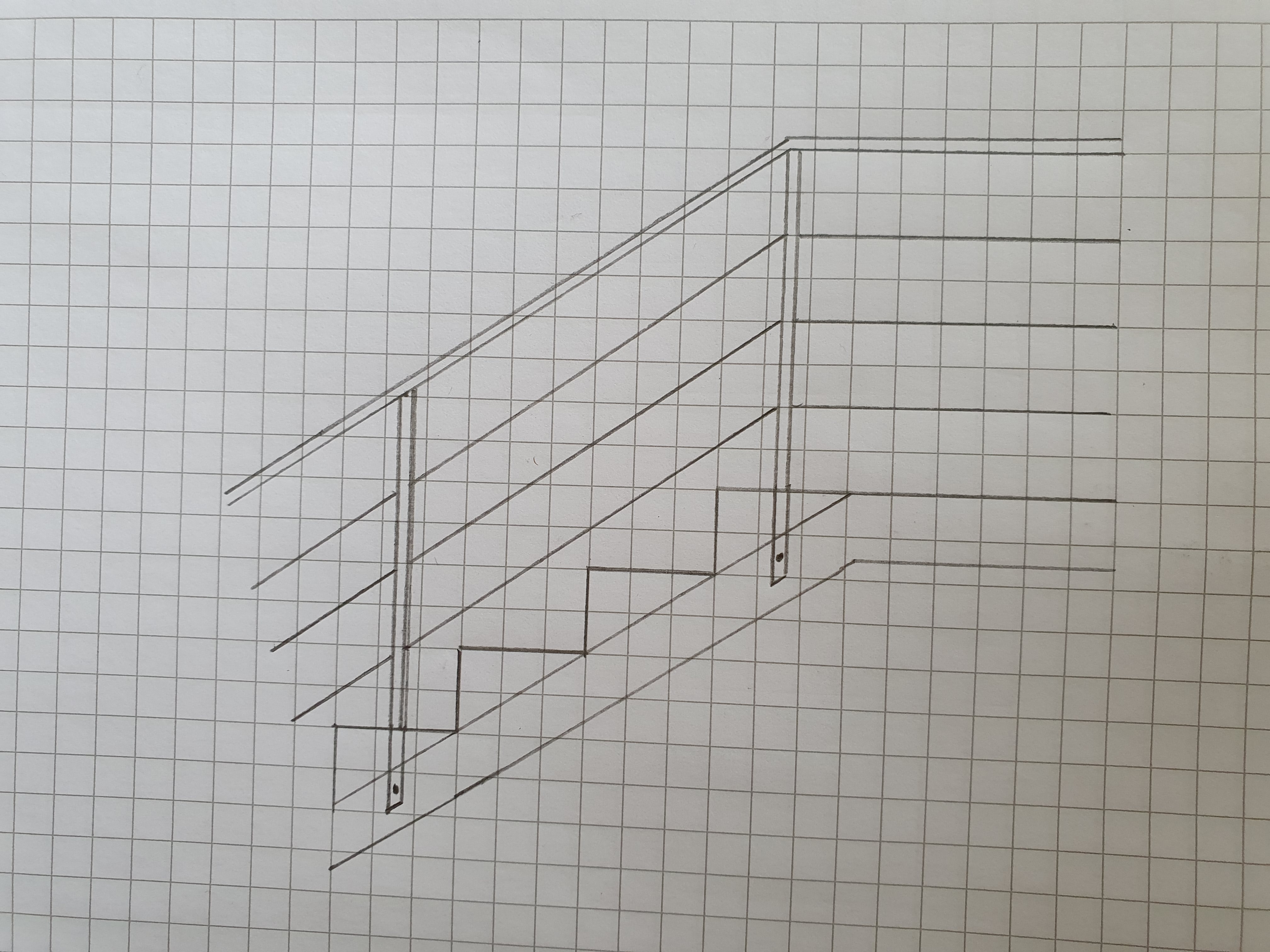 Valmistada ja paigaldada pulbervärvitud metallist trepi/terrassipiirded. Trepipiiret kokku u 21 m ja terrassipiiret u 21 m. Paigaldatava piirde ala märgitud punasega. Piirde kõrgus trepil 1m, terrassil 1,05 m, kuna pind tõuseb tulevikus.