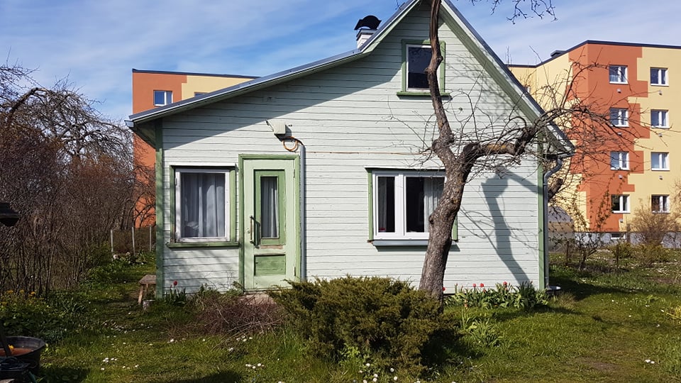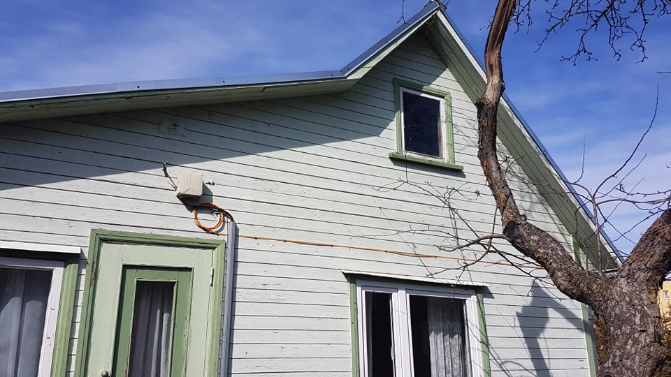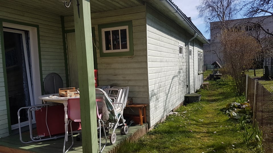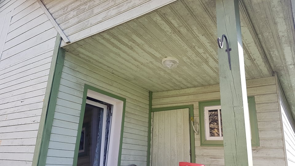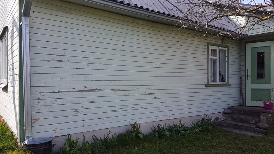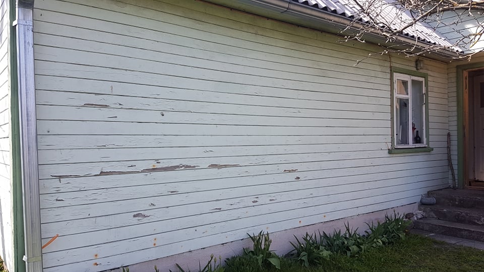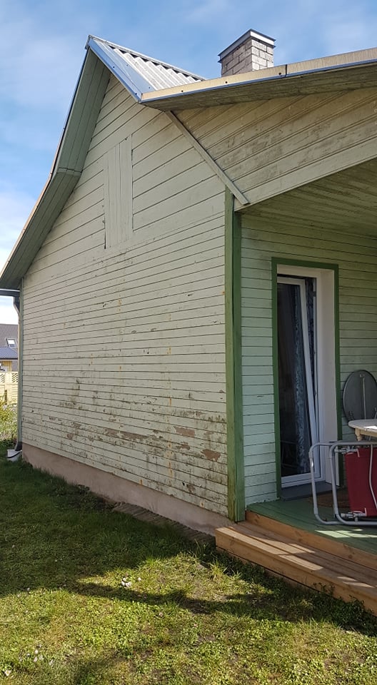 Suvemaja fassaadi vana lahtise värvi eemaldus, värvimine ja viimistlus