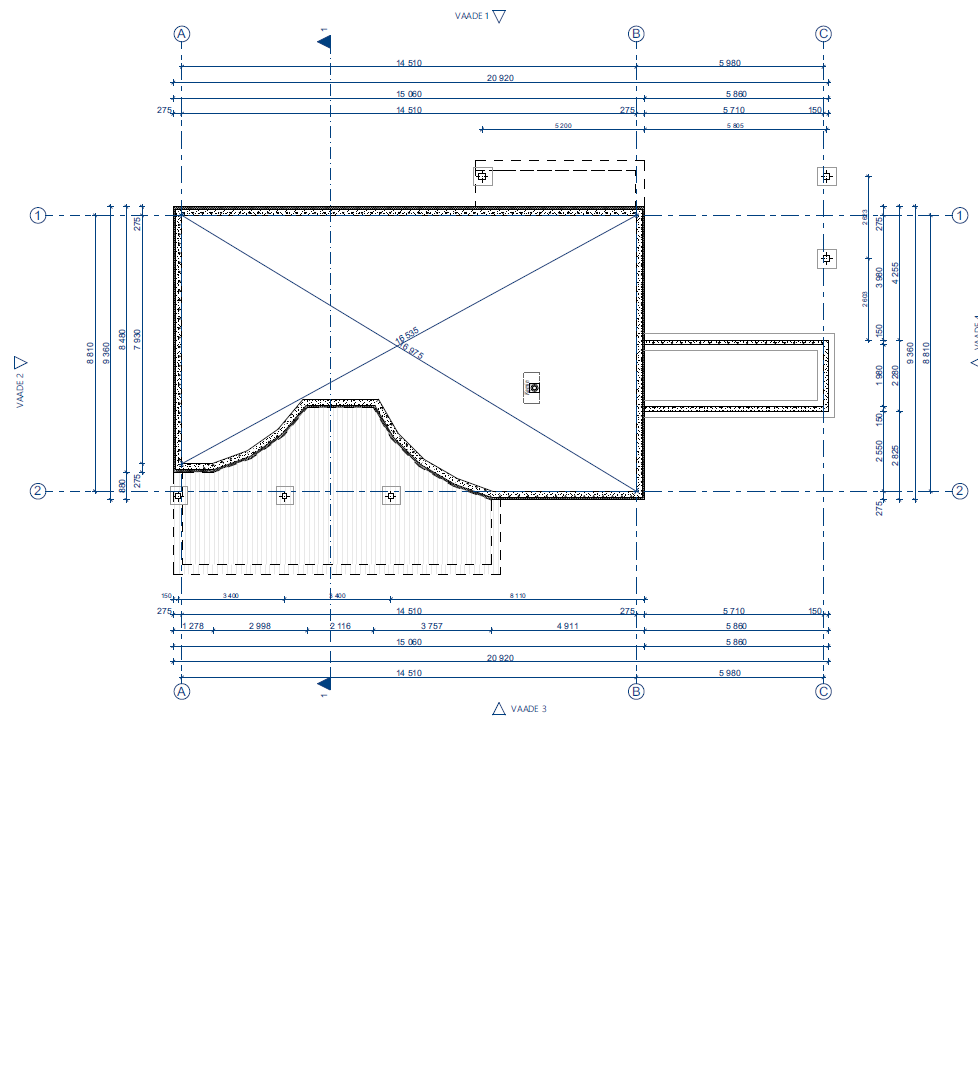 pinnase koorimist - Torutööd - Tagasitäide täiteliivaga koos tihendamise ja transpordiga 20 cm - Geotekstiil killustiku ja liiva vahel - Tagasitäide killustikuga (C 16-32) koos tihendamise ja trantspordiga 20 - 30 cm - L-ploki paigaldus (perimeetrile) 400*500*3000 - Soojustuse paigaldus 3x100mm, EPS 100 - Polüetüleenkile koos ülekattega, paigaldus - Külmakerke soojustus - Armatuurvõrk ø8 150*150mm + armatuur tugevduste sisse - Betooneerimine -"Kivex" sokliplaadi või analoogi paigaldamine 20 cm liimimisega perimeetri EPS soojustusele Joonised lisatud projektist. |