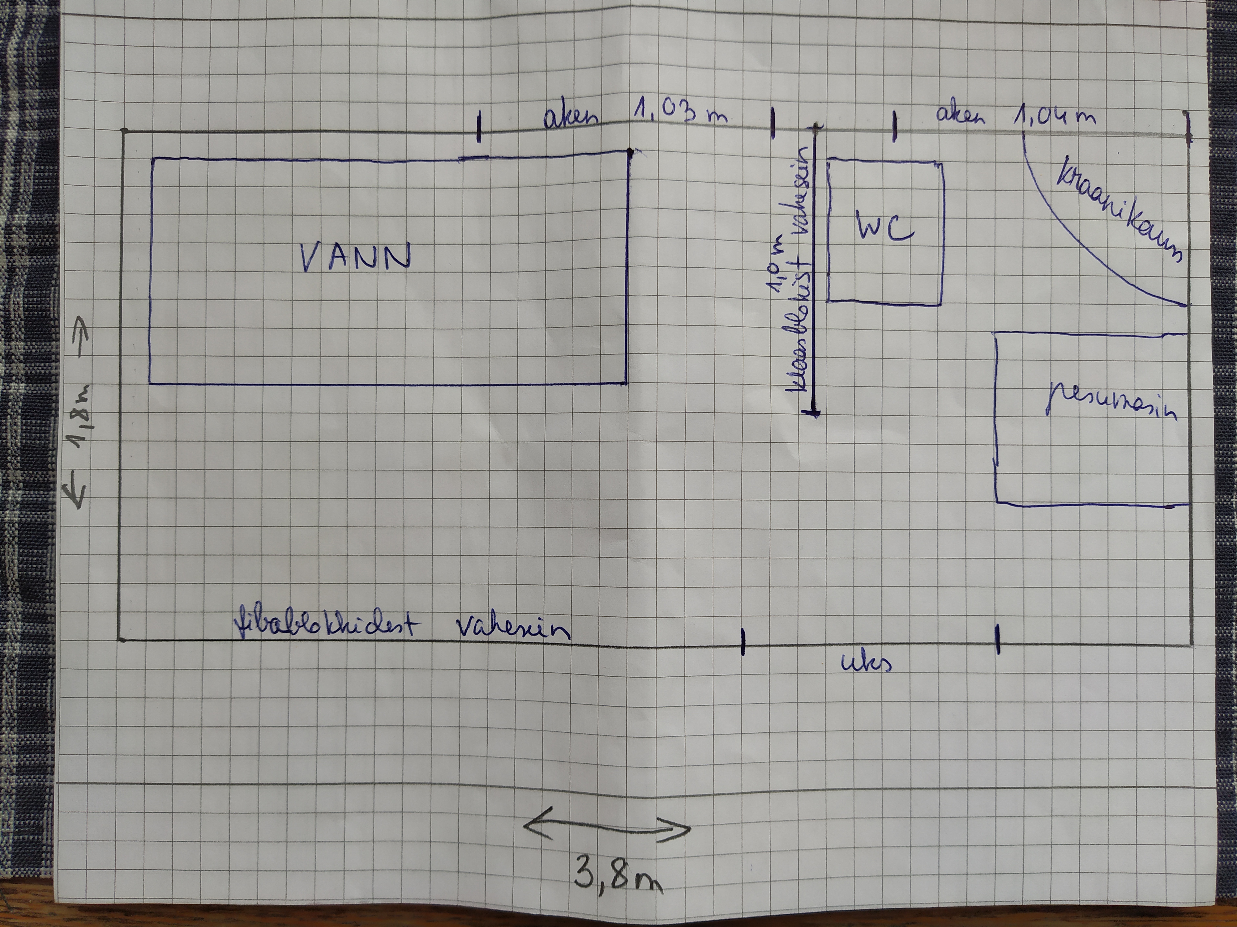 Vaja ehitada vannituba suurusega umbes 7m2. . Laduda fiboblokkidest vahesein ning klaasblokkidest madal vahesein vannitoaosa ning WC osa vahele. Tõmmata veetorud ja panna veemõõtja. Paigaldada elektriline põrandaküte, hüdroisolatsioon, plaatida põrand ja seinad, soojustada lagi ja teha sellele ripplagi. Vedada vannituppa elekter, teha akende paled, paigaldada veeboiler, vann, WC pott ja kraanikauss.