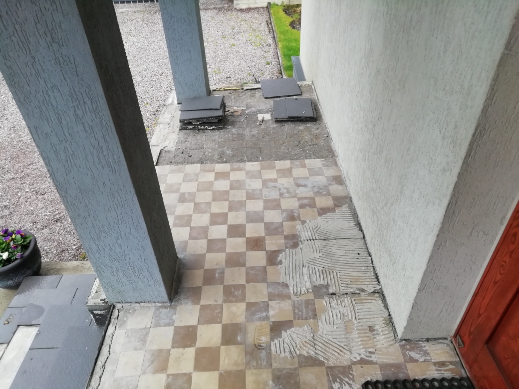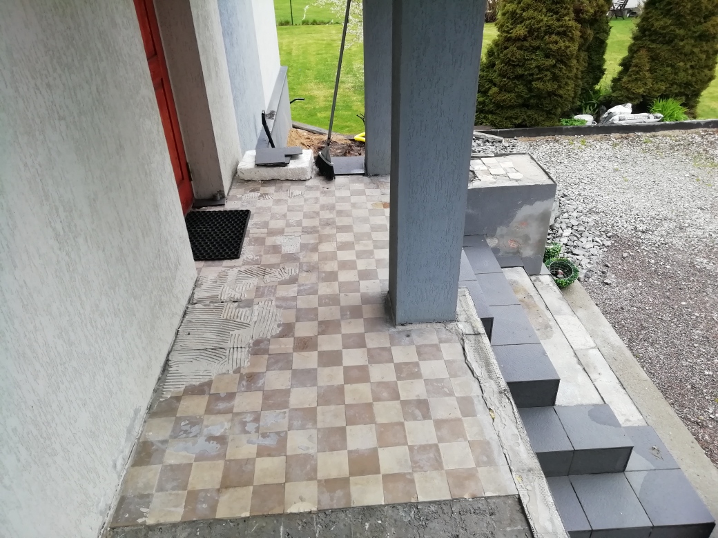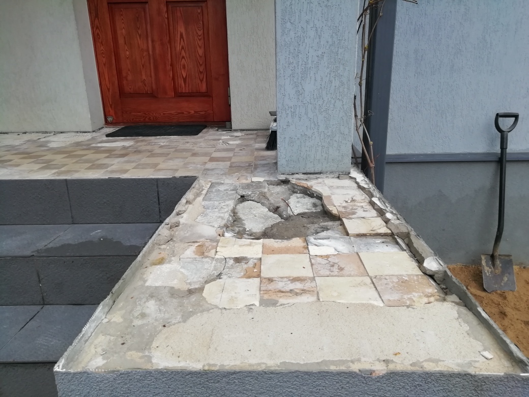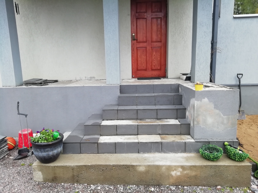 Tallinnas, Nõmmel asuva eramaja välistrepi aluspinna tasandamine, hüdroisolatsiooni paigaldamine , plaatimiseks ettevalmistamine ja plaatimine.