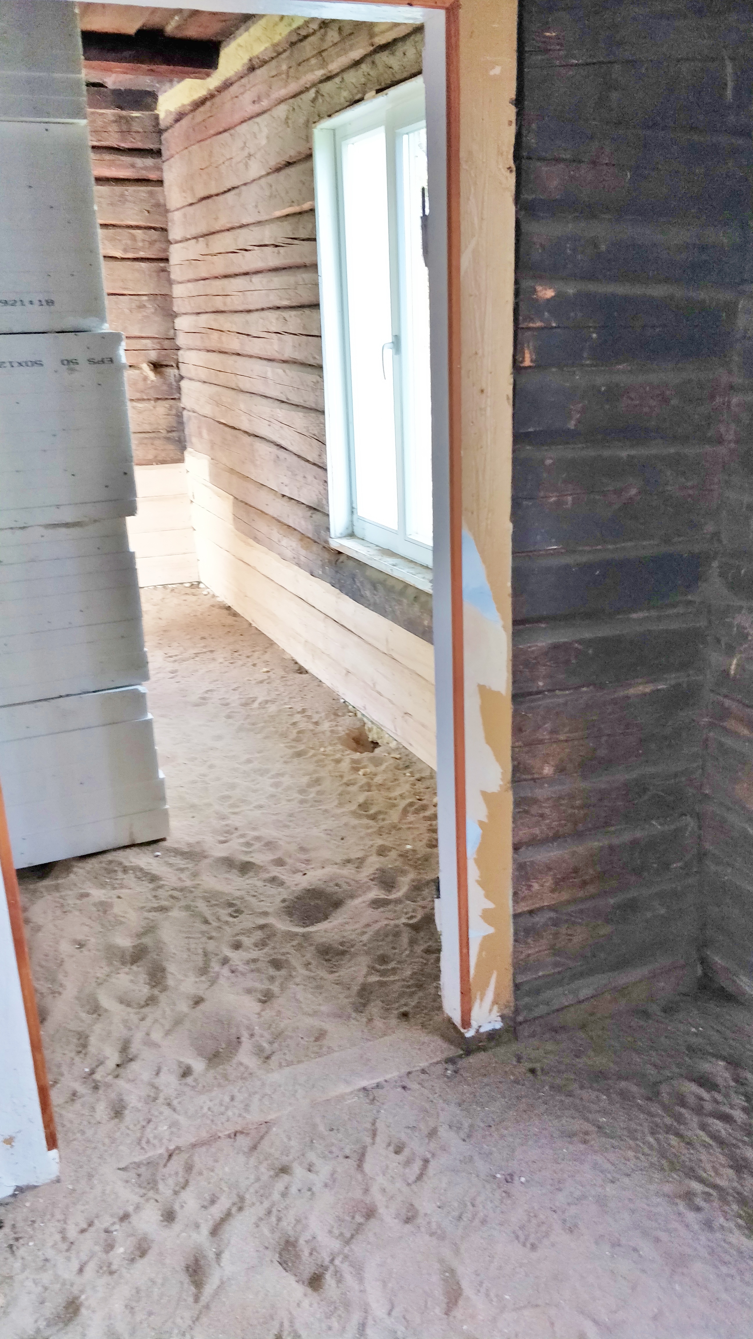 Vana palkmaja (115 m2) põrand on liivaga täidetud, olemas pakendites põranda peno. Liiv on tasandajaga tihendatud.