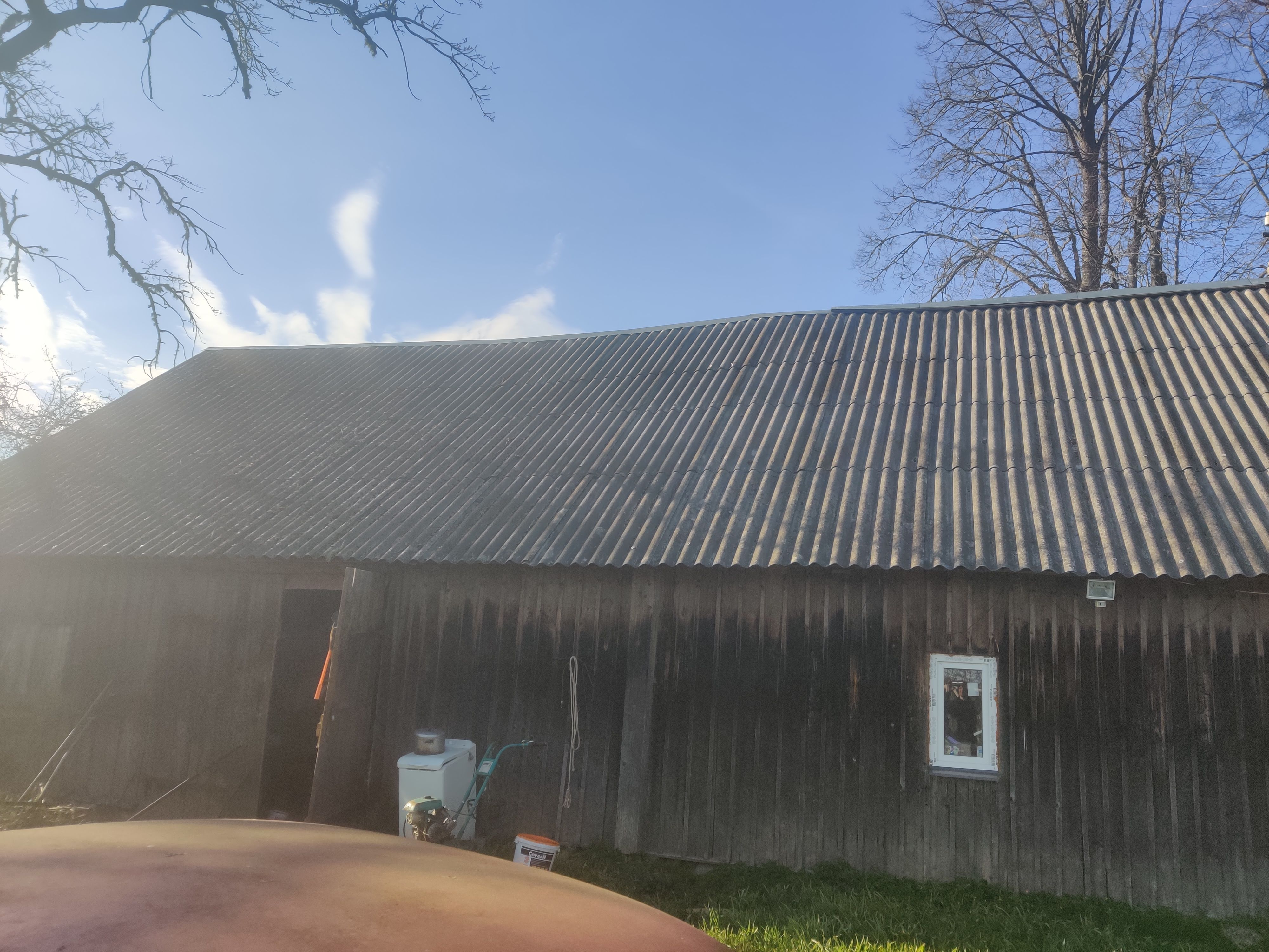 Vana eterniidi mahavõtt ja uue paigaldus, vajadusel vana roovi eemaldus ja uue roovi paigaldus. Harja pleki paigaldus samuti. Tuulekasti ehitus. Katuse pinda umbes 140 ruutu. Materjal hanke korraldaja poolt.