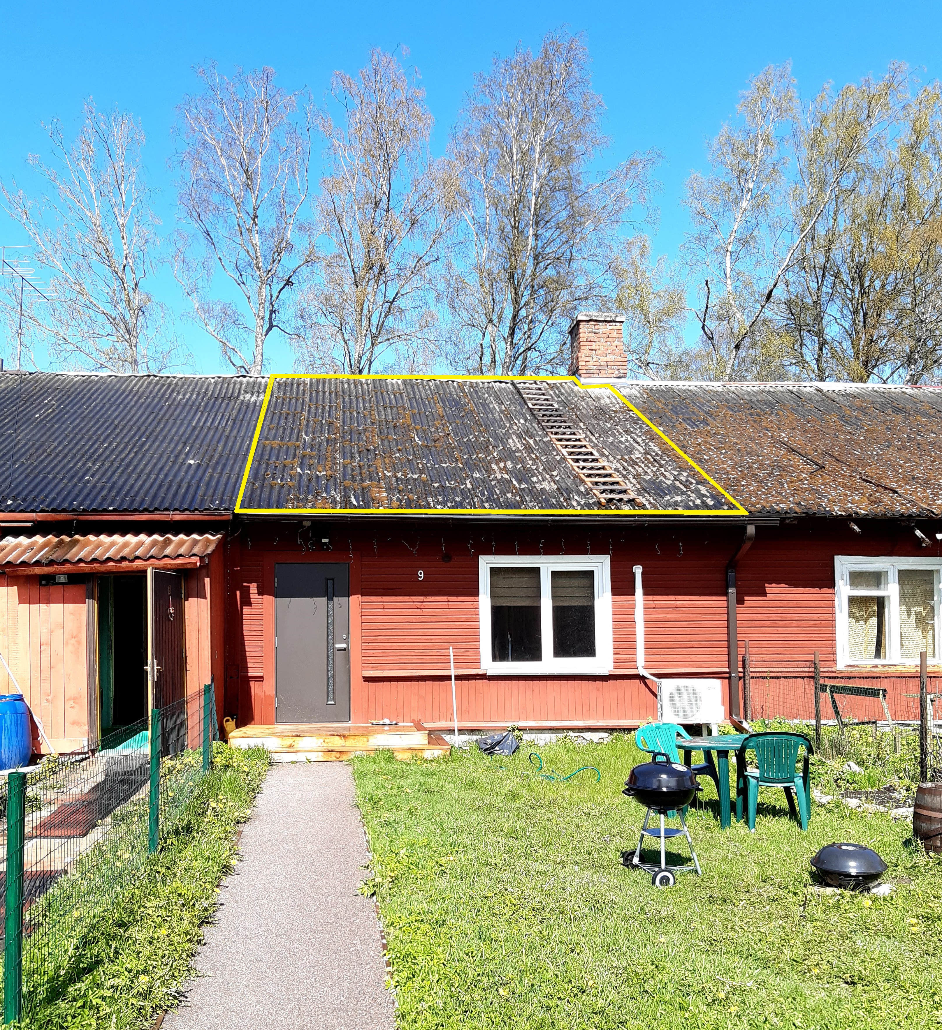 1.pilt Korter eest vaadatuna. kollase kastiga näidatud katuse osa mis vajab vahetust.