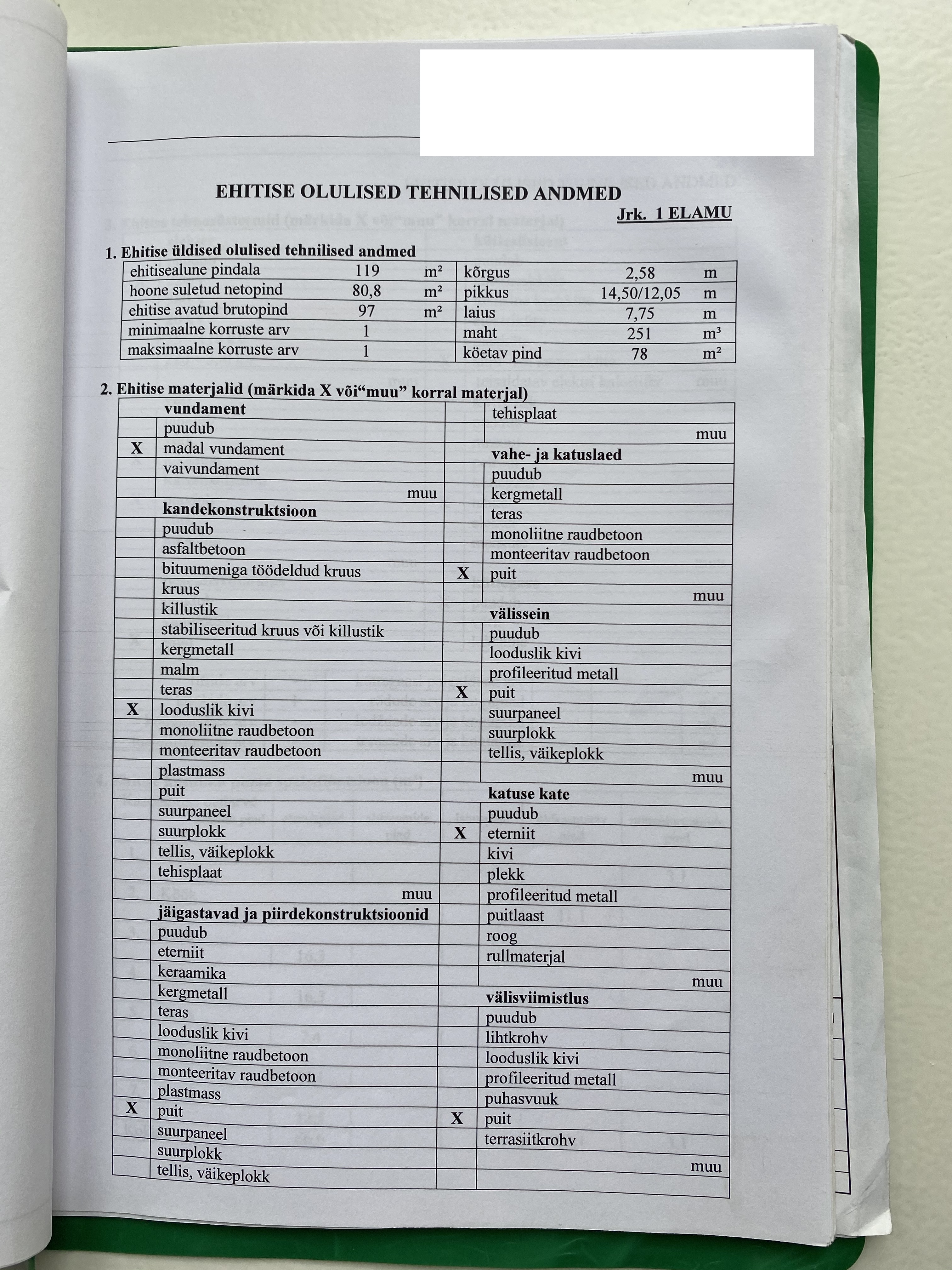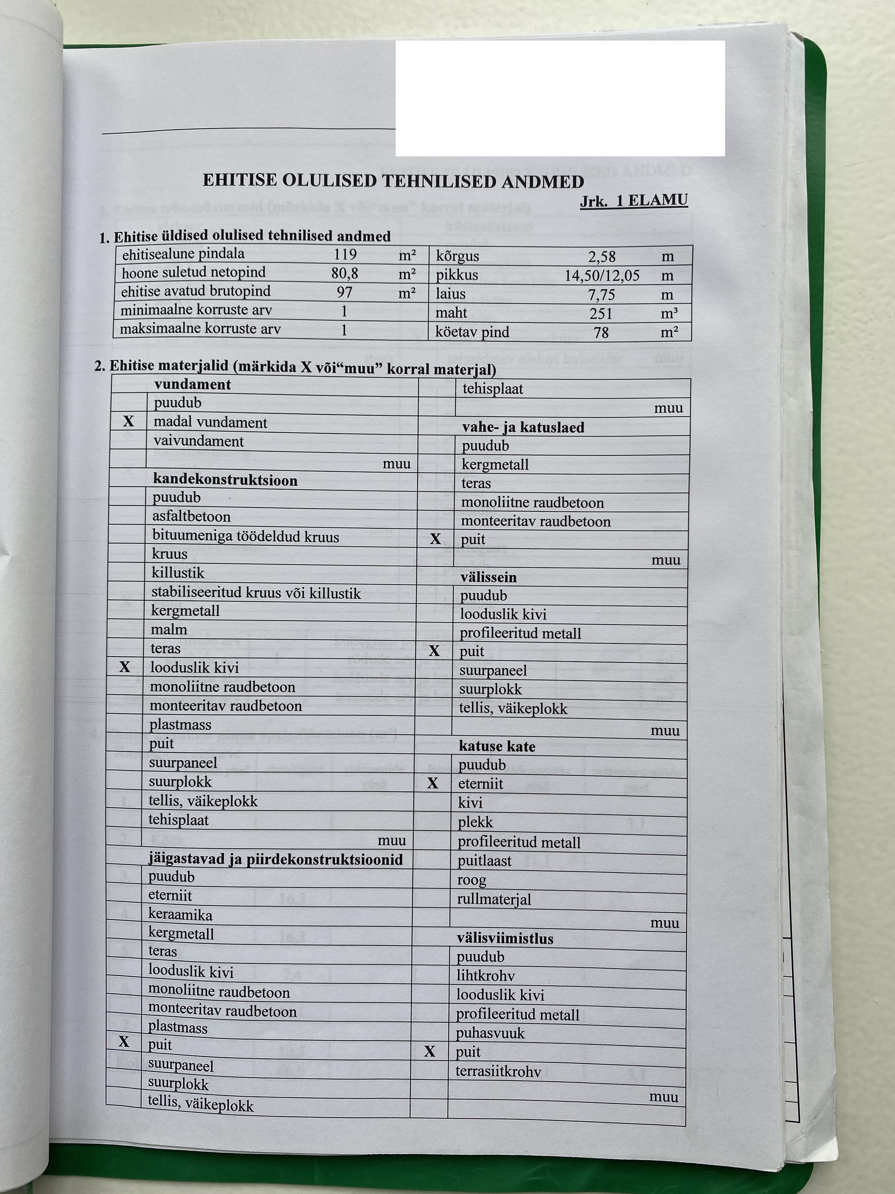 | Ehitusmaterjalid: | Töö tellija poolt |