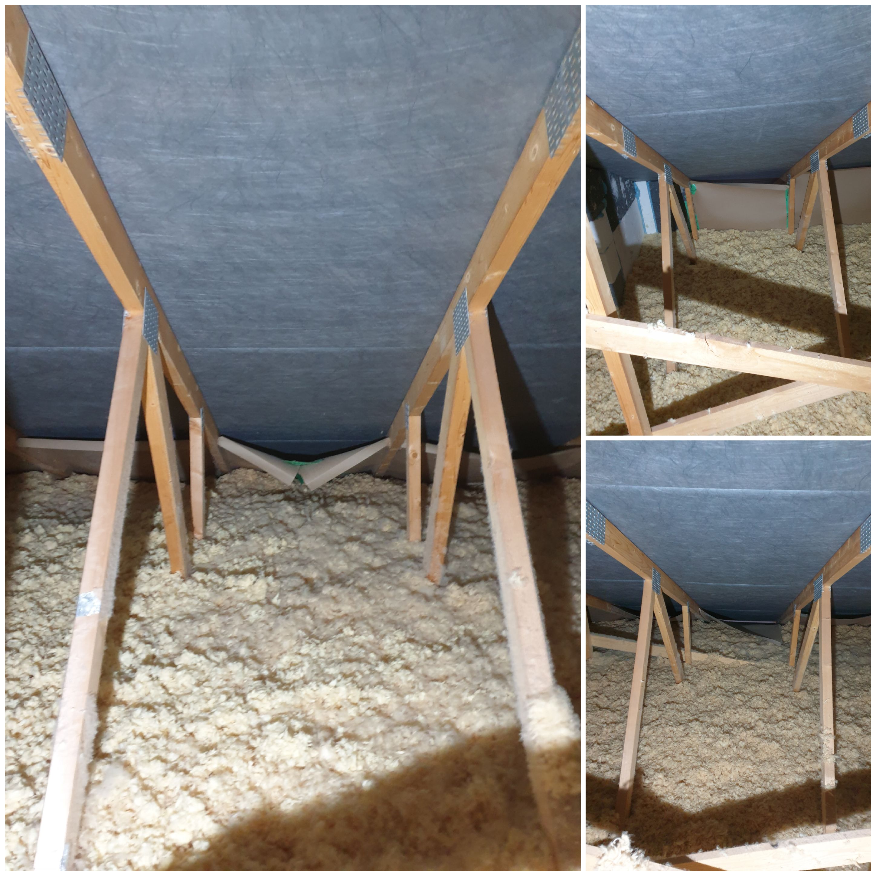 Isoveri papist tuulesuunajad on kehvasti kinnitatud, mistõttu on osa neist lahti tulnud, osa tuleks paremini kinnitada ja mõned asendada. Käigutee on korralik, aga pööning on villa all, mistõttu saab liikuda vaid ferme mööda. Ferme 28 tk. U 6-10 tuulesuunajat tuleks asendada või neile täienduseks nt. soome papist uus tahvel ette panna, ülejäänute puhul piisab kinnitusliistu lisamisest. Mõnes kohas vaja teipida. Vajalikud materjalid ostan ise, olukord nähtav piltidelt. Mugavam oleks teha kahekesi. Hiljem tuleb natuke puistevilla peale pihustada ehk ka seda võib hankesse pakkuda, aga ei pea.