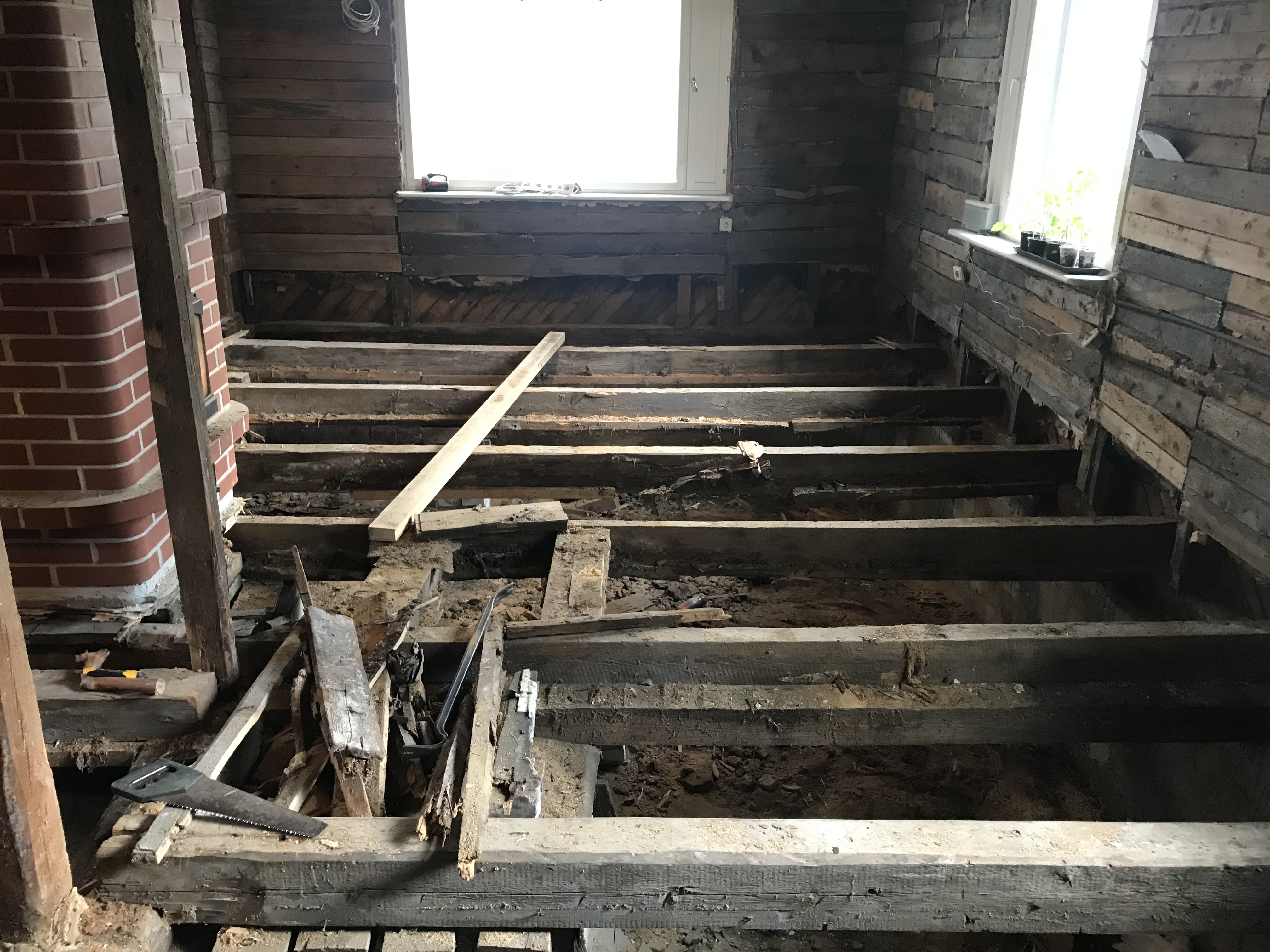 Vaja on vahetad vundamendi vöö puittalad kogu primeetri ulatuses ning paar vahelae kandeposti. Hetkel põrand lahti võetud ja välja viidud ning alumine seinaosa avatud. Hea kui saak seda teha välisvoodrit rikkumata. Peale vöö vahetamist teha uus põrand koos põrandaküttega. Ise näeks siin kolme varianti: